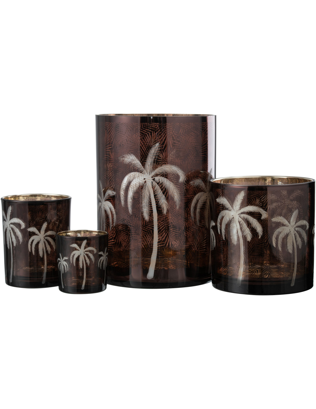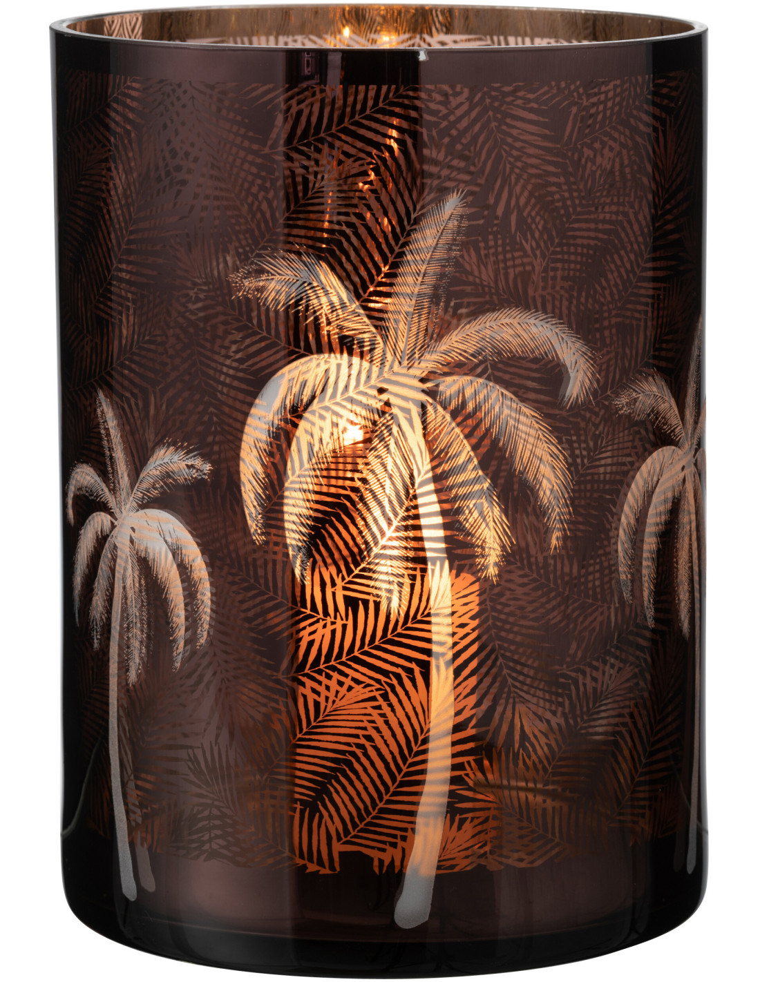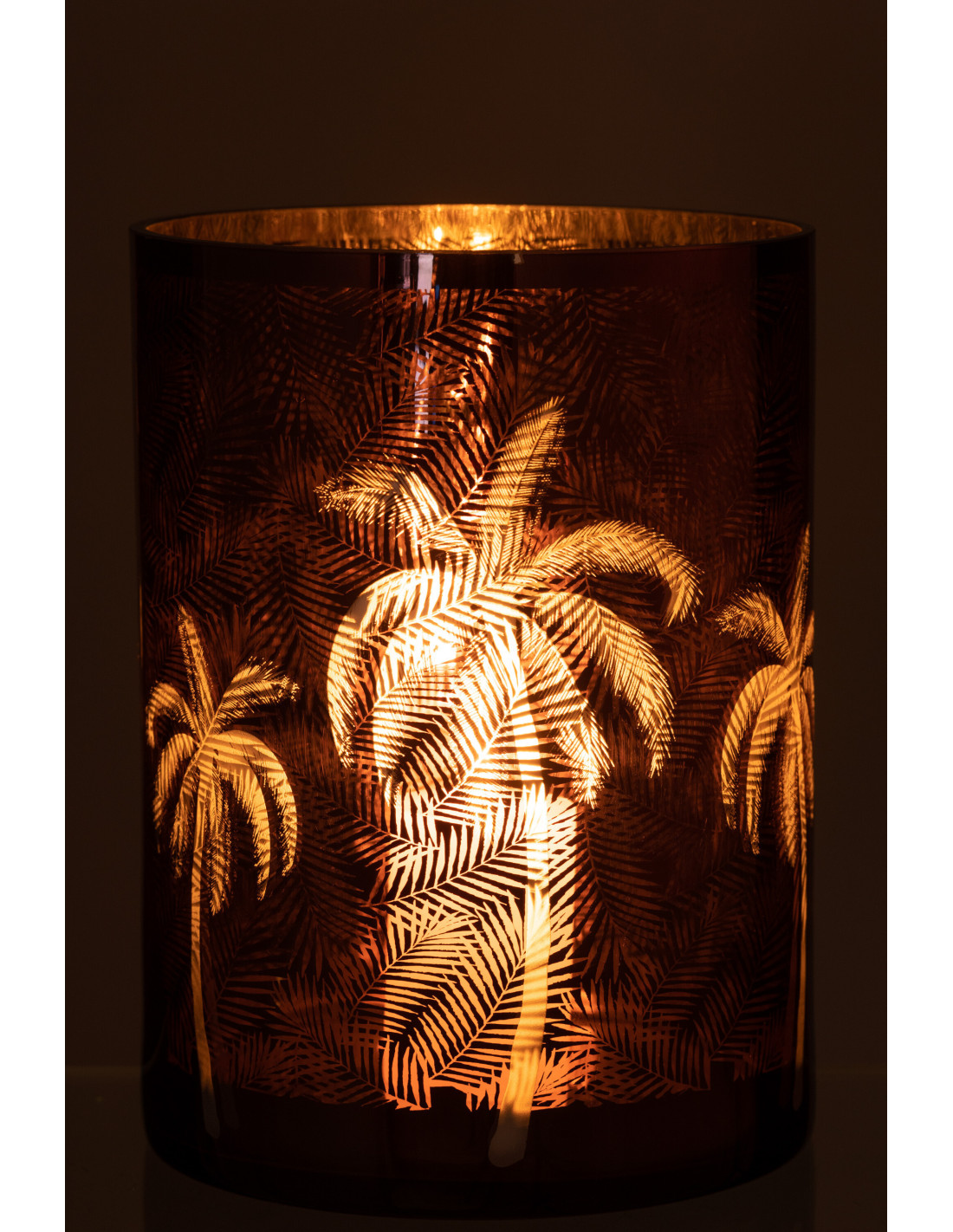 Photophore moderne exotique XXL Diamètre 17 cm en Verre Marron Motif palmier Xotika