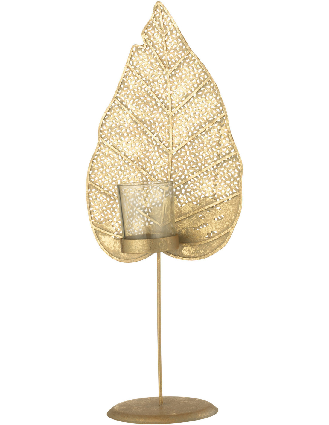 Photophore moderne Feuille XL Hauteur 49 cm en Métal Doré Ulisse
