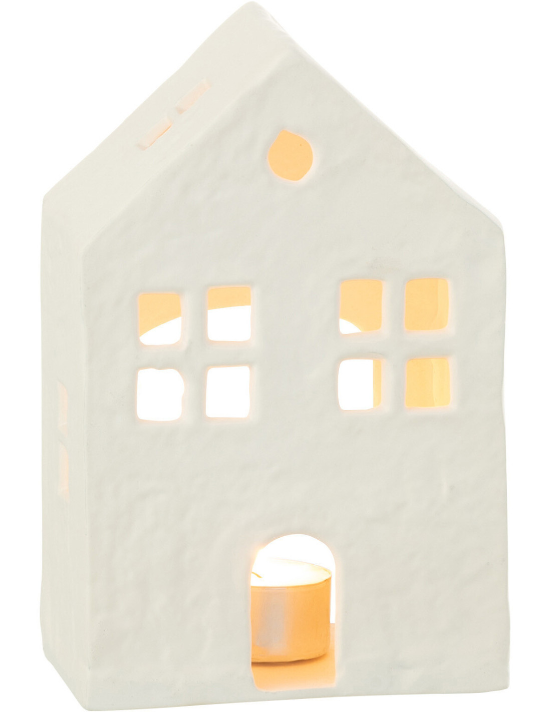 Photophore moderne Maison Hauteur 19 cm en Métal Blanc Elvinae - 1