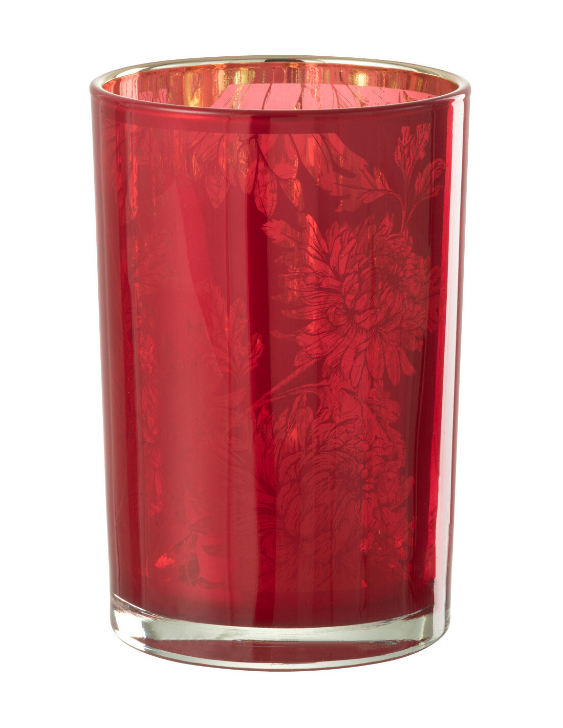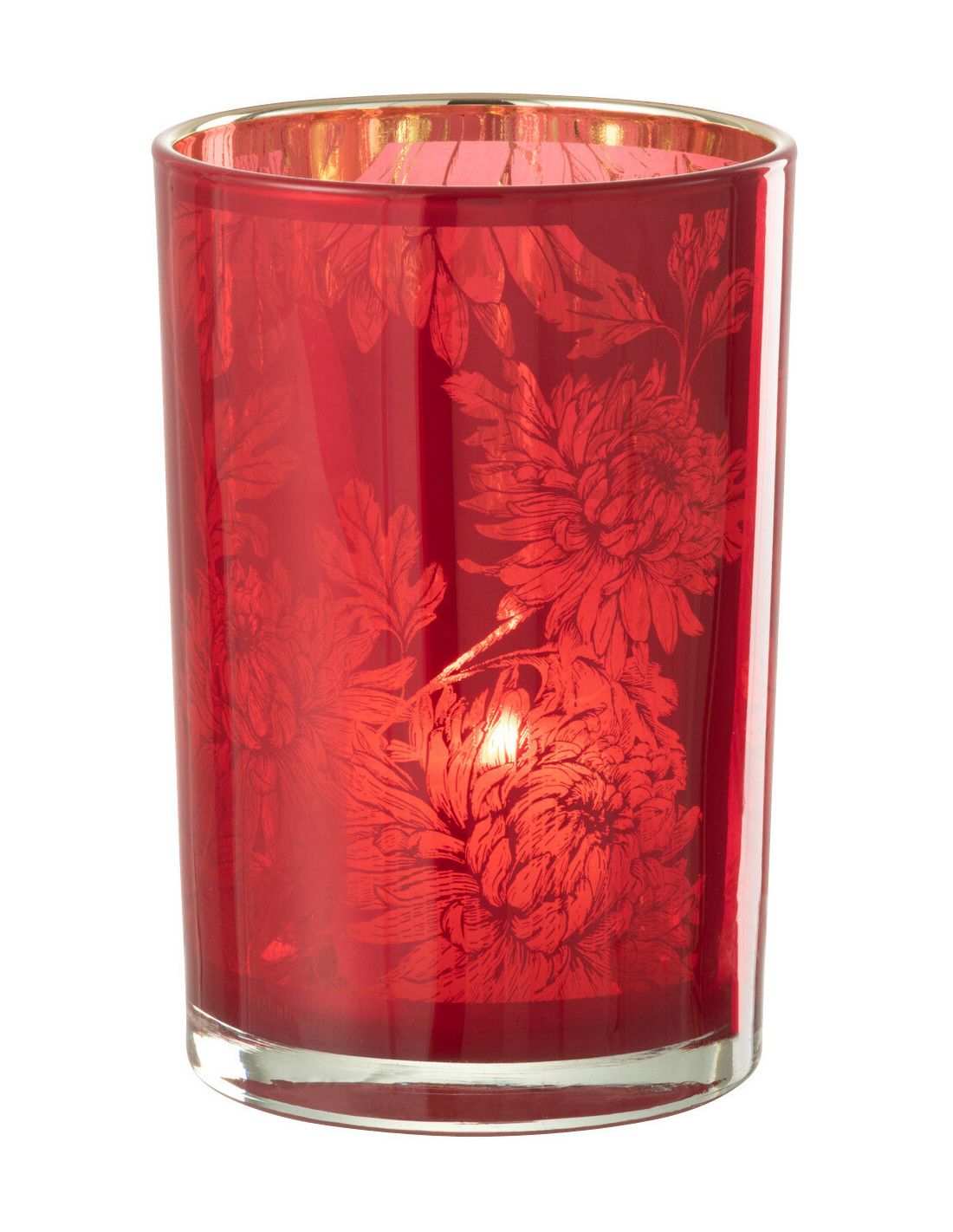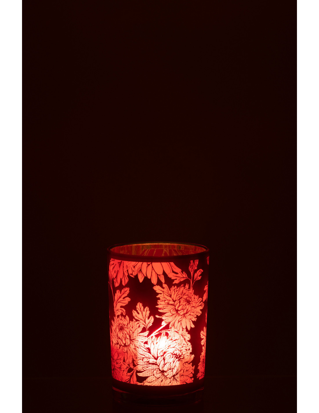 Photophore moderne romantique Diamètre 12 cm en Verre Rouge Motif fleurs Karia