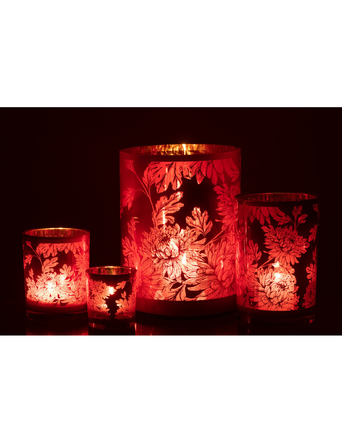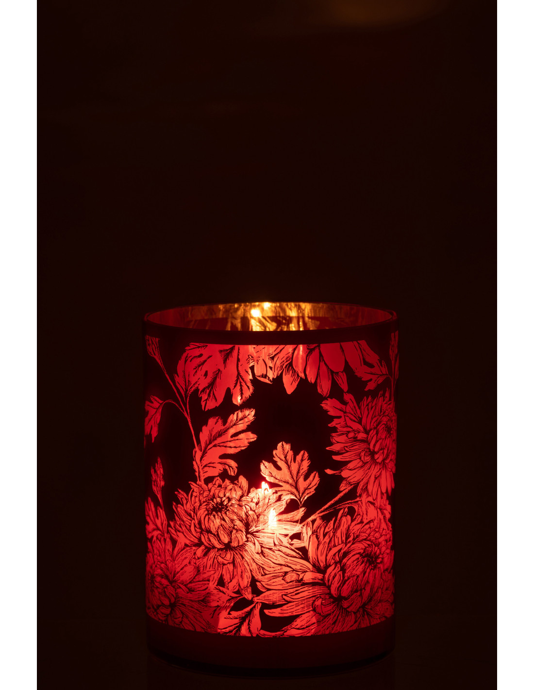 Photophore moderne romantique XL Diamètre 18 cm en Verre Rouge Motif fleurs Karia