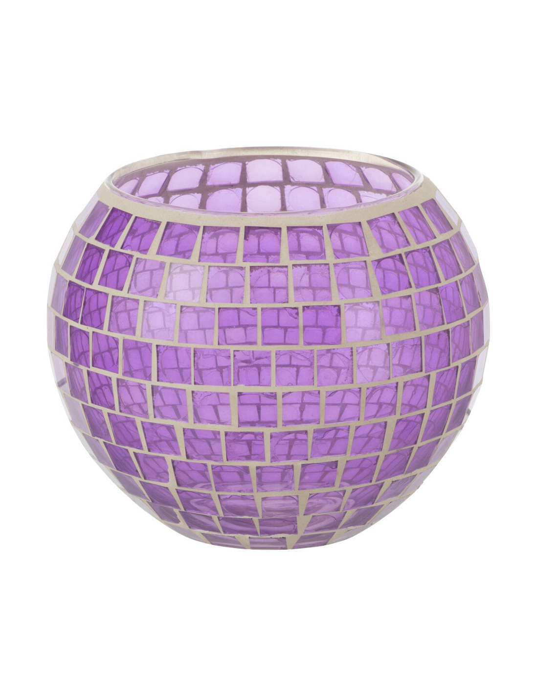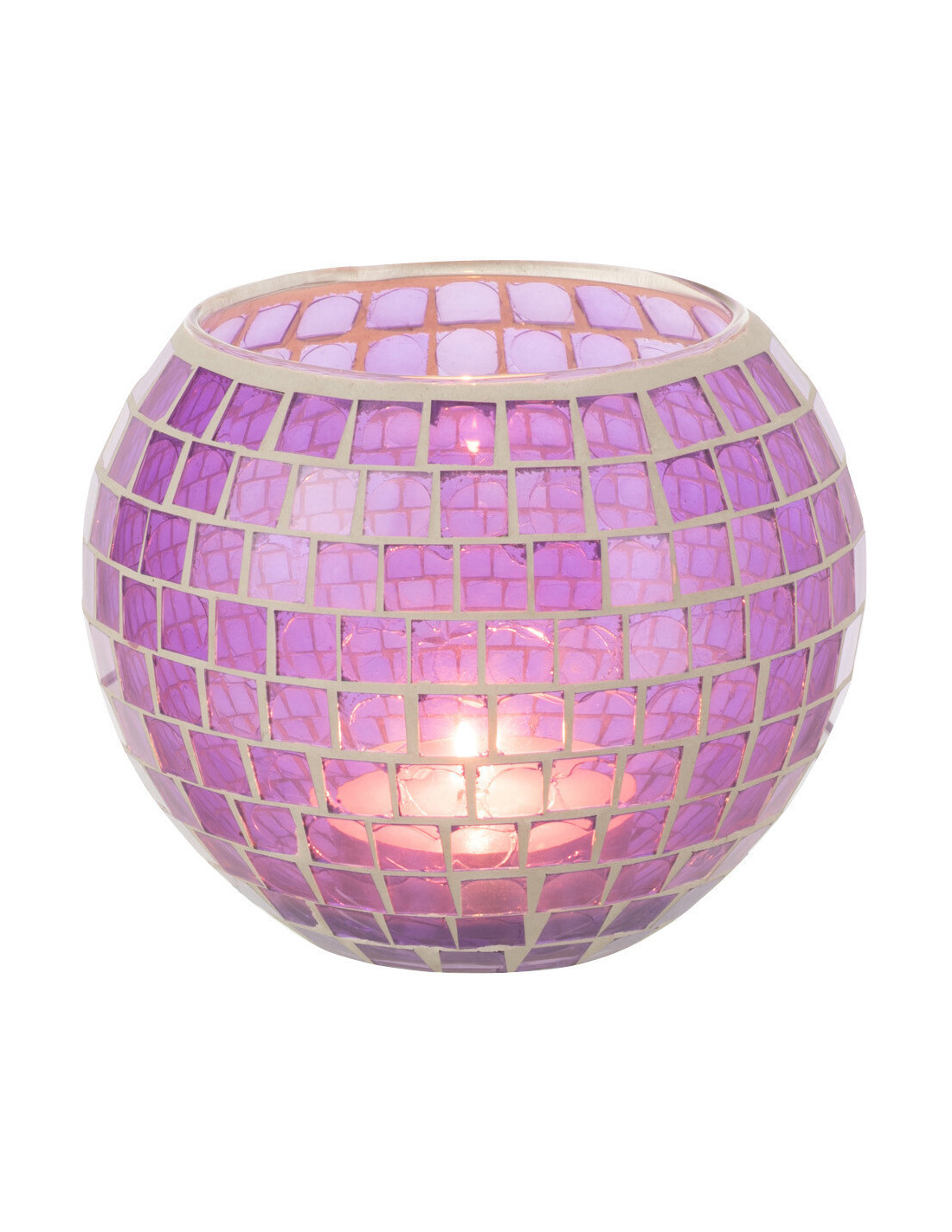 Photophore moderne rond XL Diamètre 15 cm en Verre Mauve Motif mosaïque Orenz - 1
