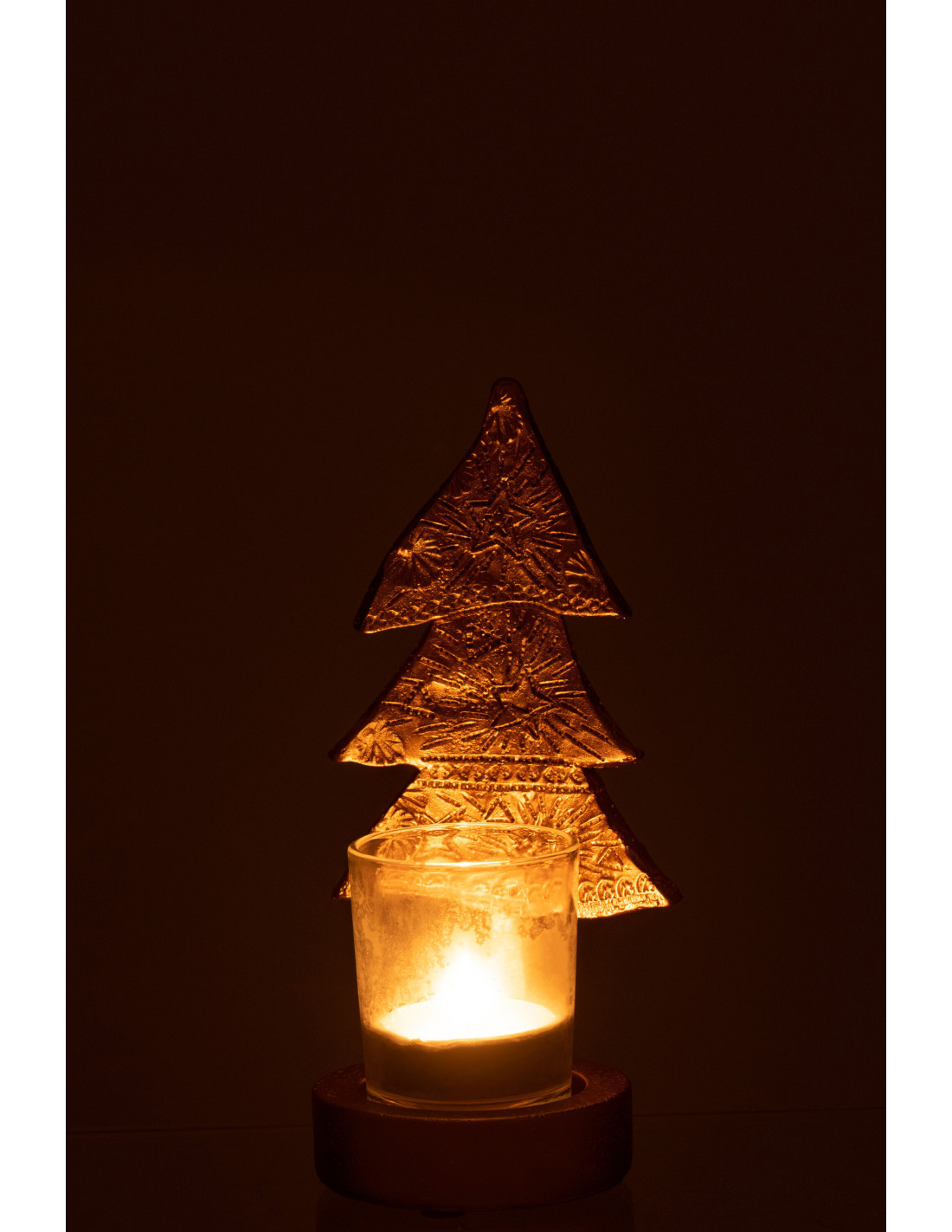 Photophore moderne Sapin de Noël Hauteur 17 cm en Résine Doré Verre Transparent Elviano