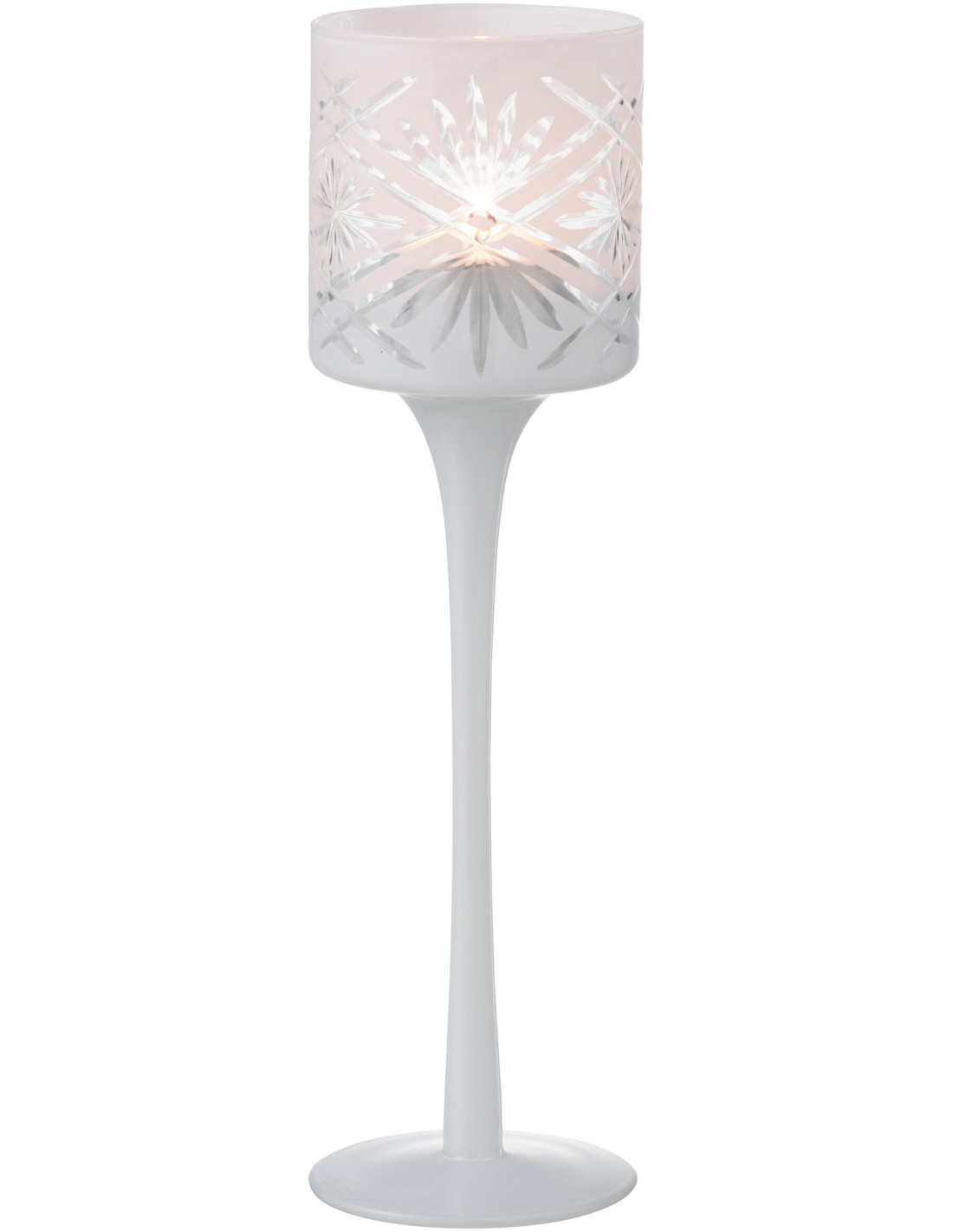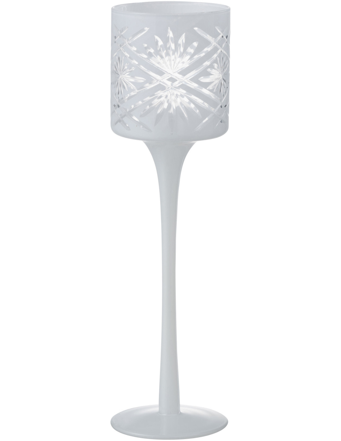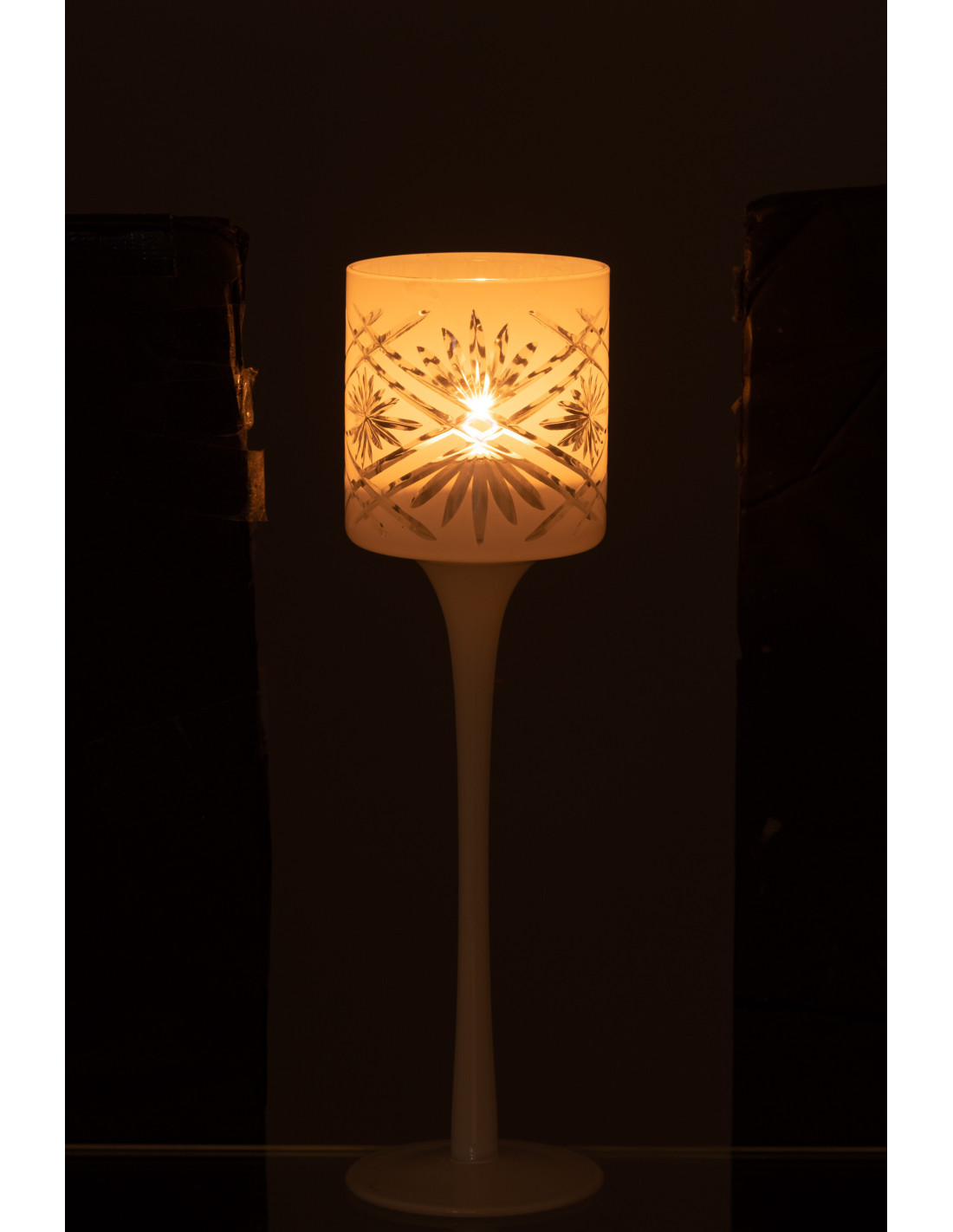 Photophore moderne sur pied Hauteur 25 cm en Verre Blanc Santorini