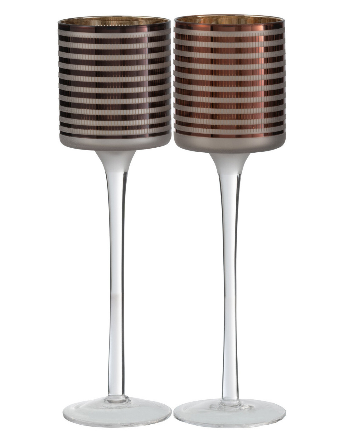 Photophore moderne sur pied Hauteur 25 cm en Verre Marron Blanc Motif rayé Jazzino (Lot de 2)