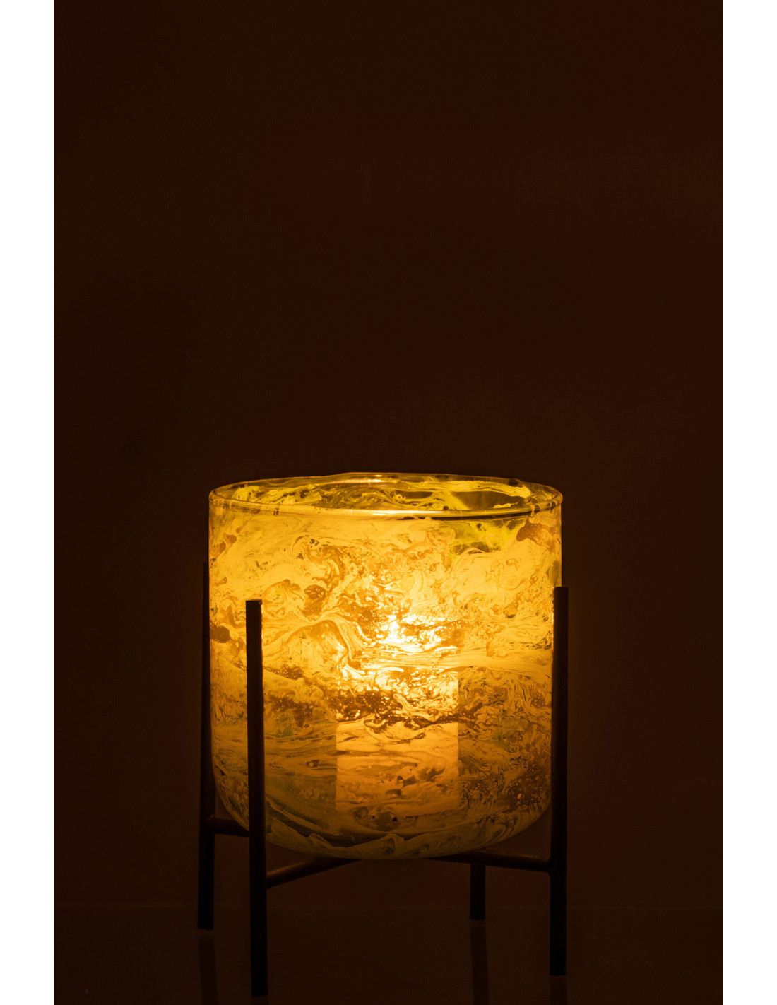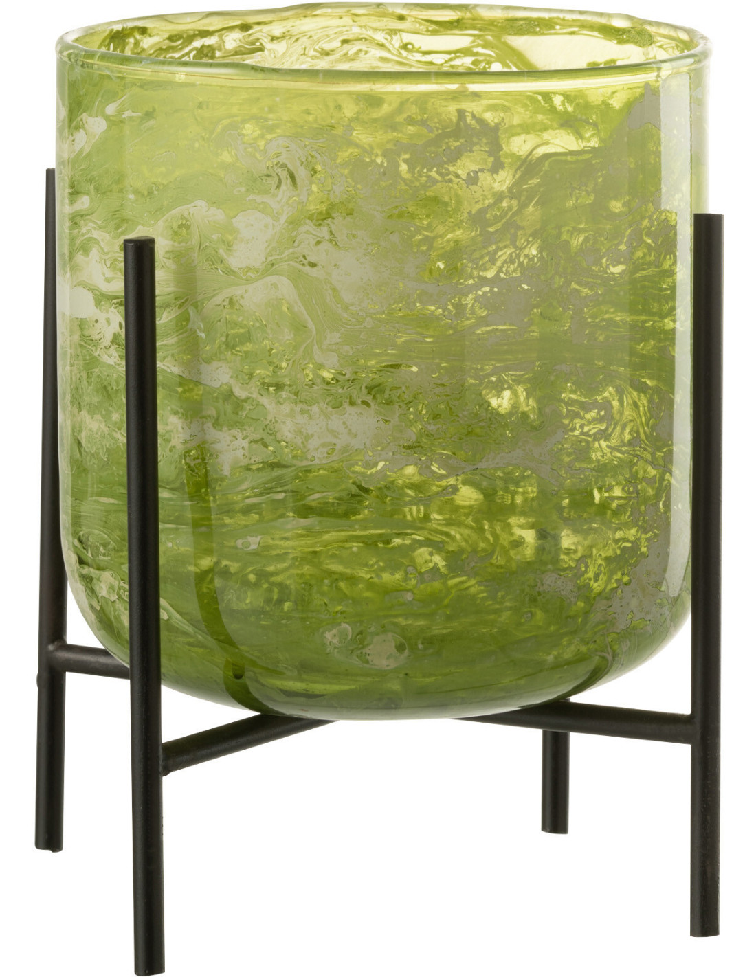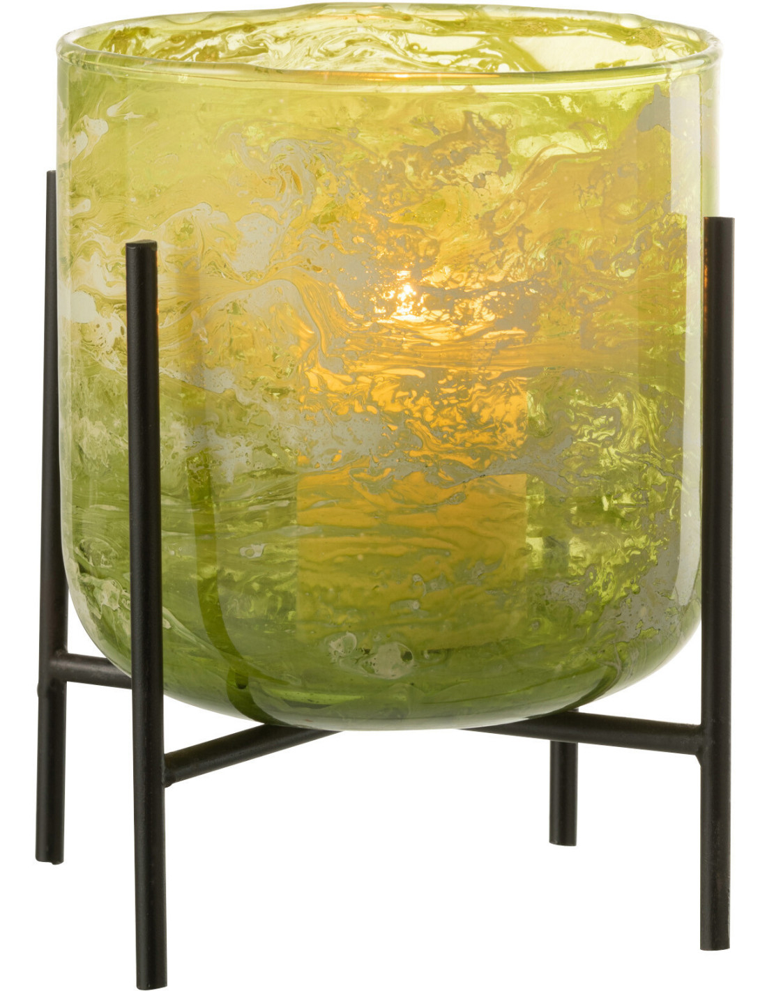 Photophore moderne sur pied XL Diamètre 15 cm en Verre Vert Métal Noir Effet marbré Tovrio