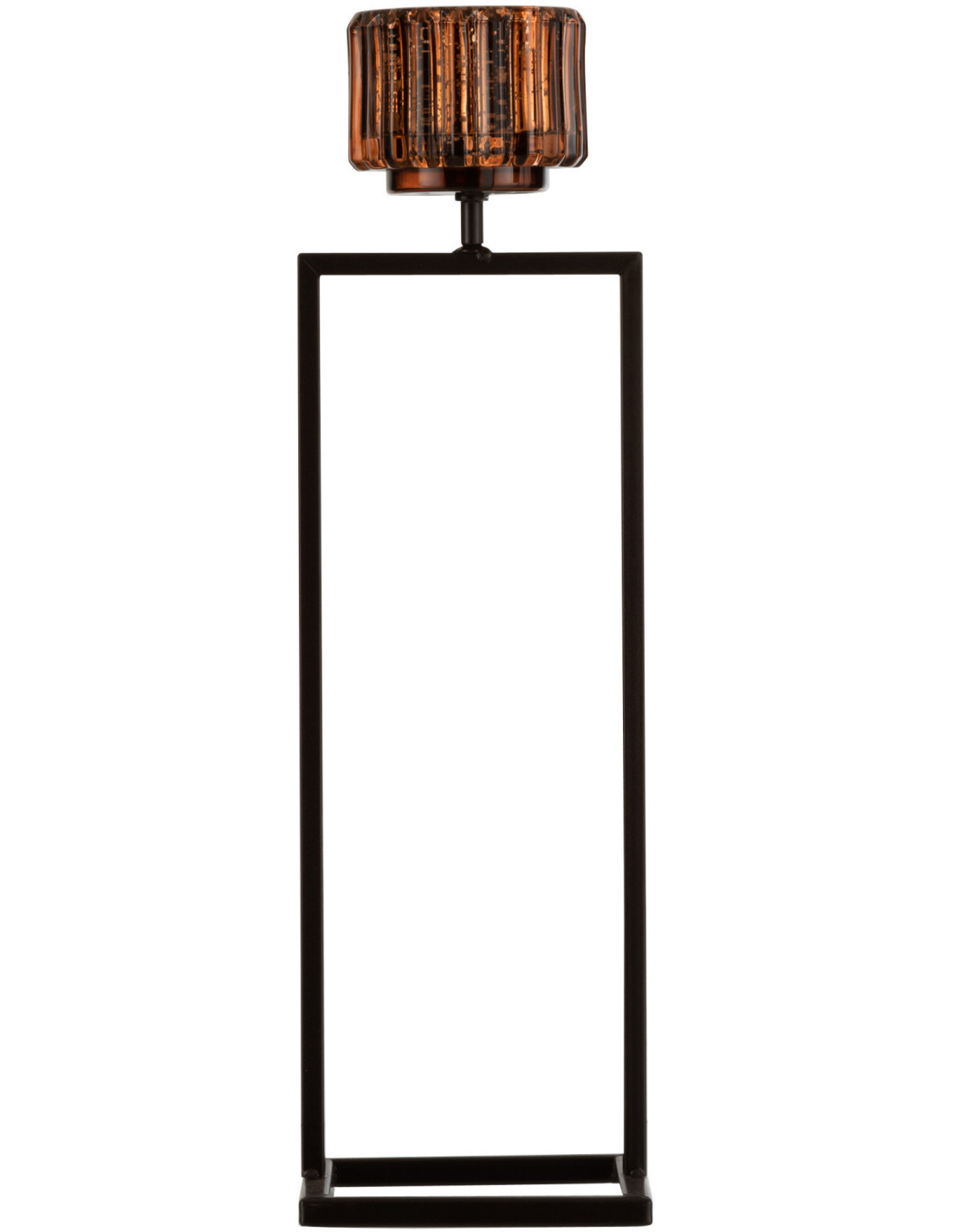 Photophore moderne sur pied XL Hauteur 42 cm en Métal Noir Verre Ambre Delisa - 1