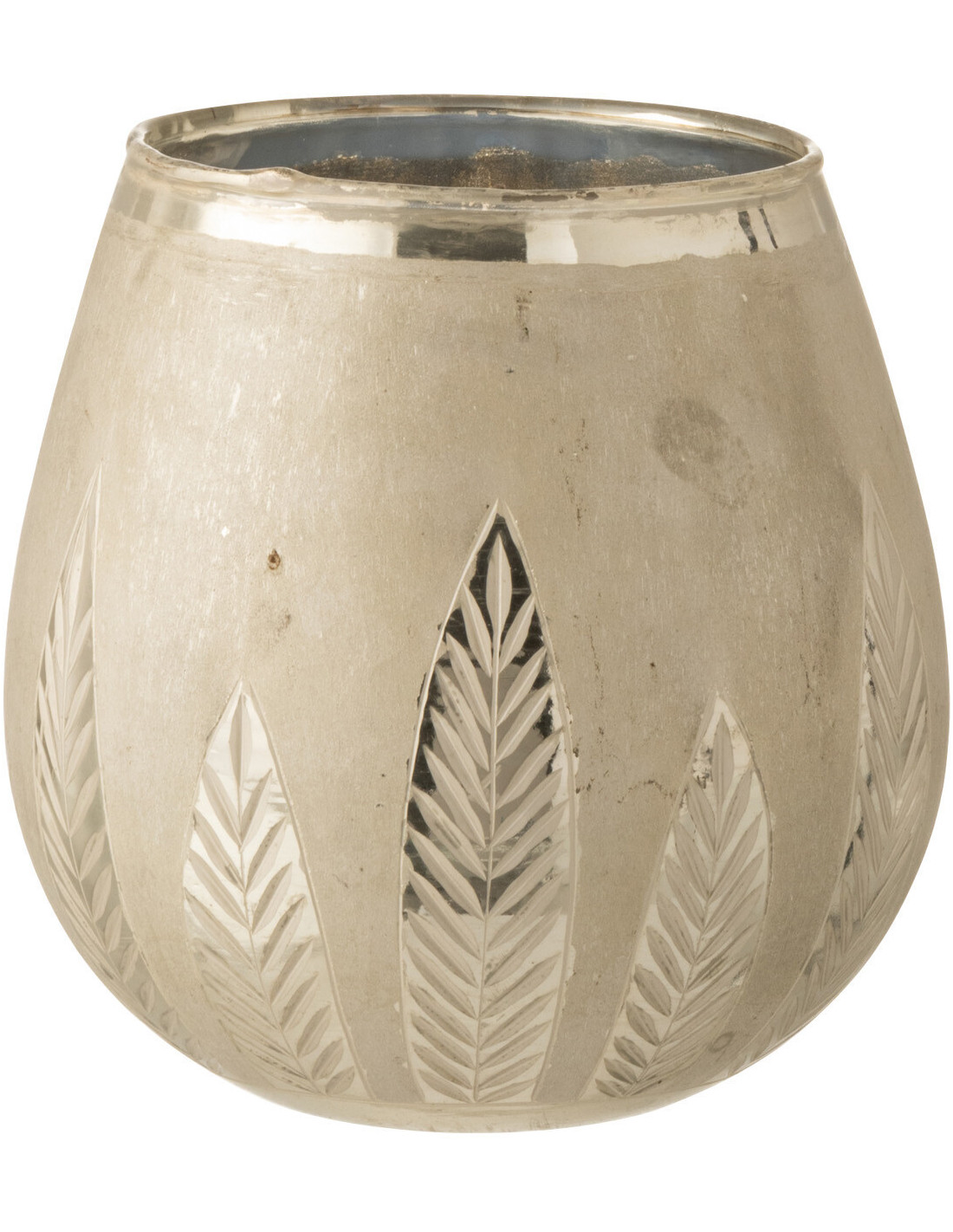 Photophore moderne XL Diamètre 18 cm en Verre Argenté Motif feuilles Nialen