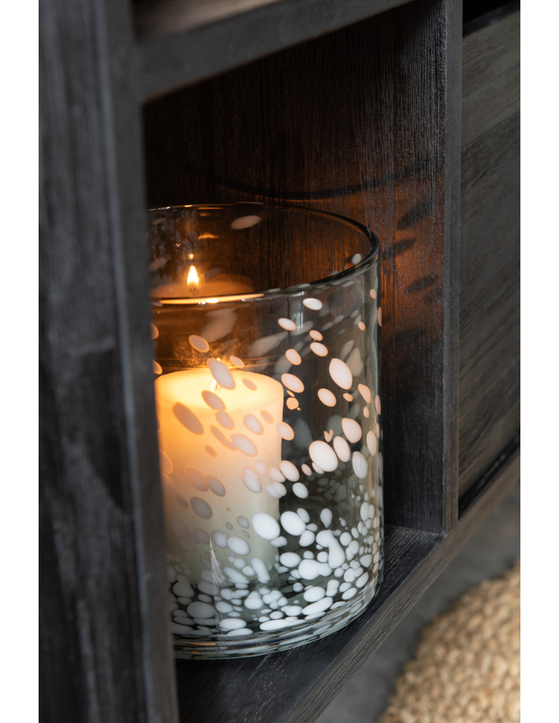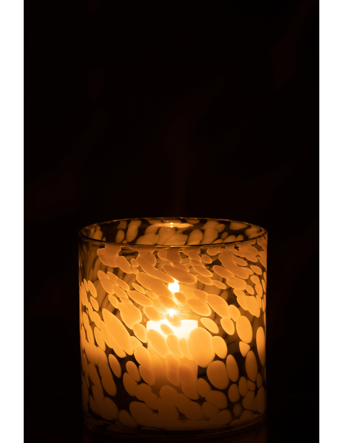 Photophore moderne XL Diamètre 18 cm en Verre Gris Blanc Motif taches Haline