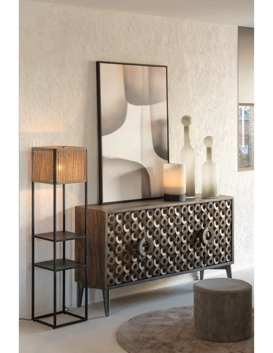 Photophore moderne XL Hauteur 31 cm en Bois de saule Noir Verre Gris Ray