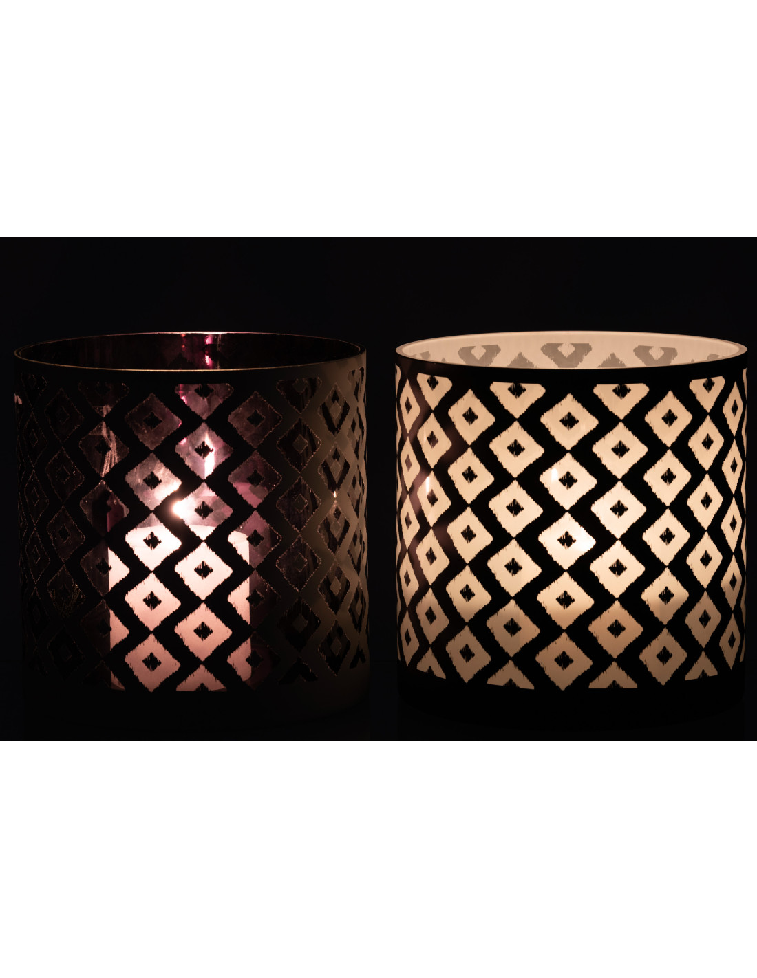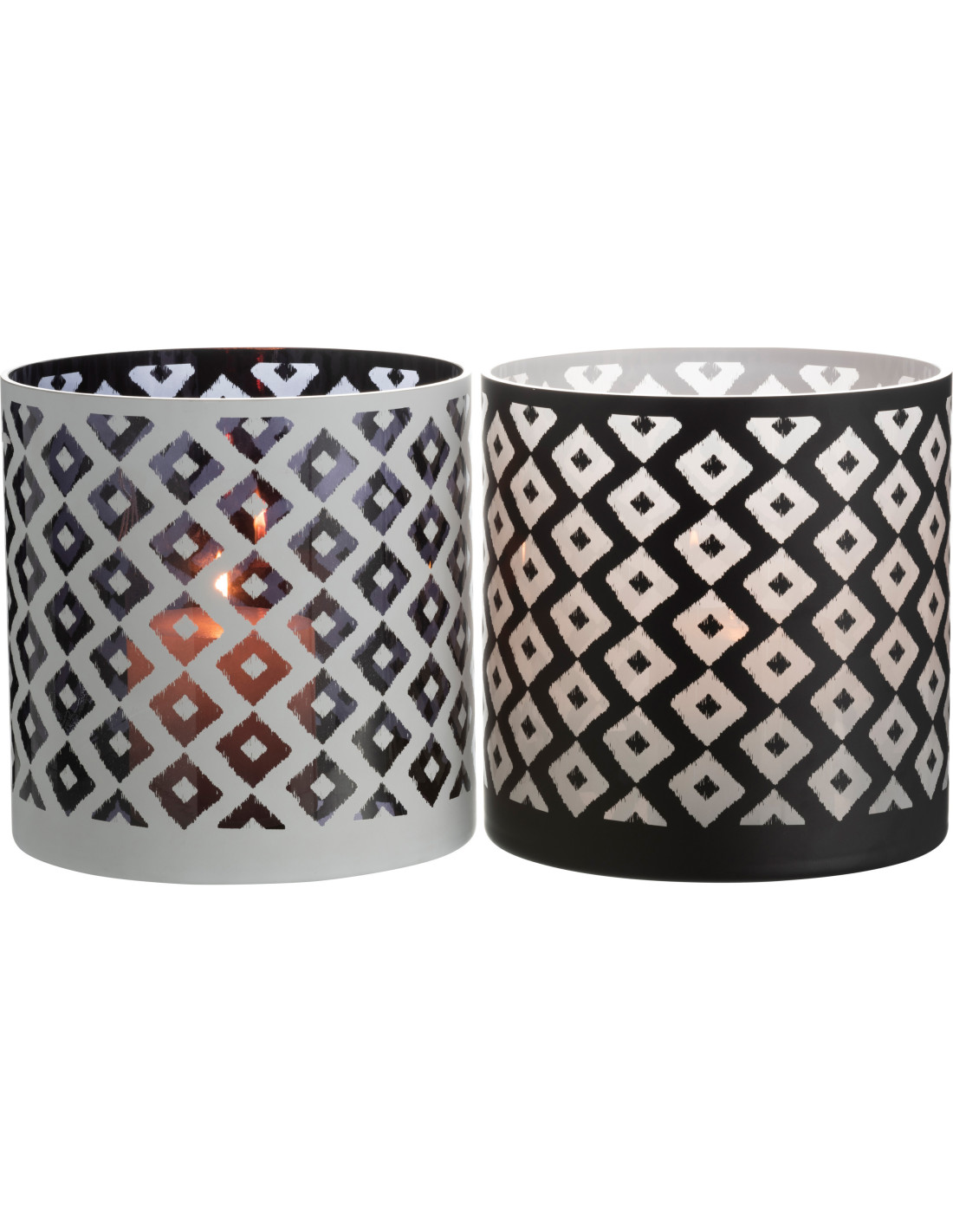 Photophore moderne XL losanges Diamètre 24 cm en Verre Noir Blanc Irvenk (Lot de 2)