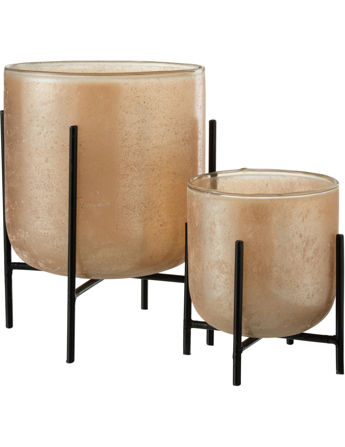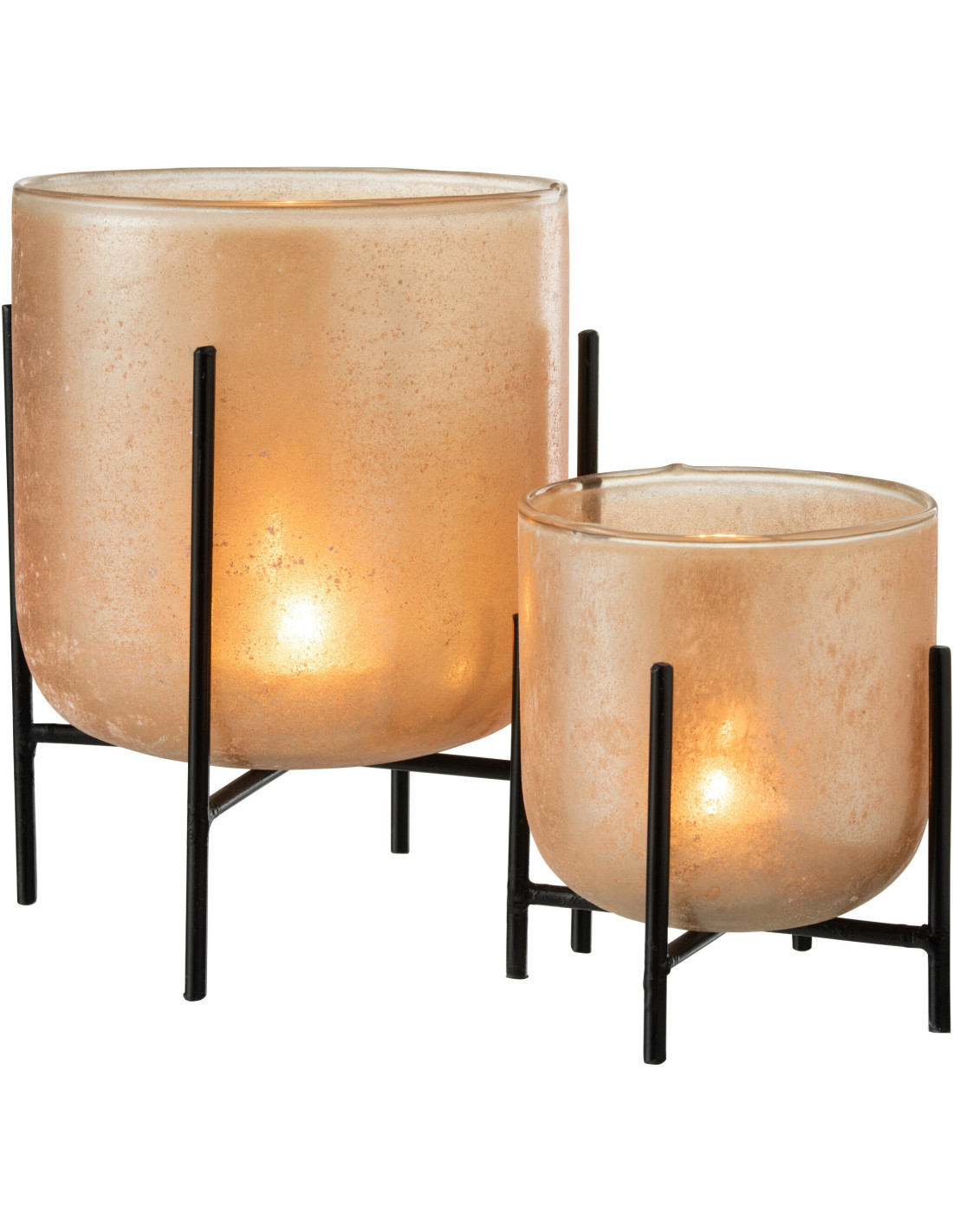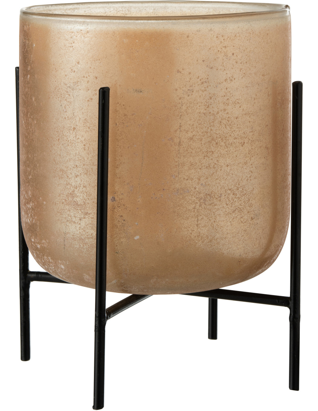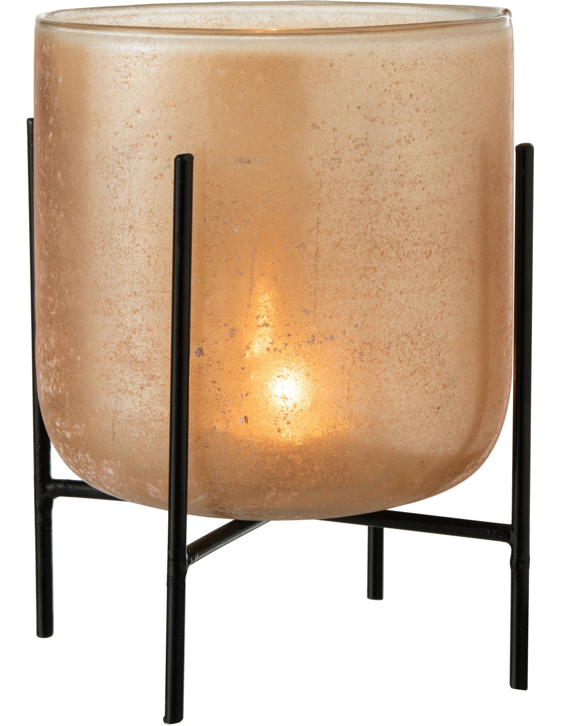Photophore moderne XL sur pieds Diamètre 18 cm en Verre Ambré Métal Noir Astor