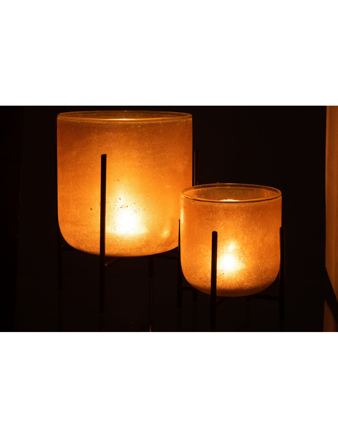 Photophore moderne XL sur pieds Diamètre 18 cm en Verre Ambré Métal Noir Astor - 2
