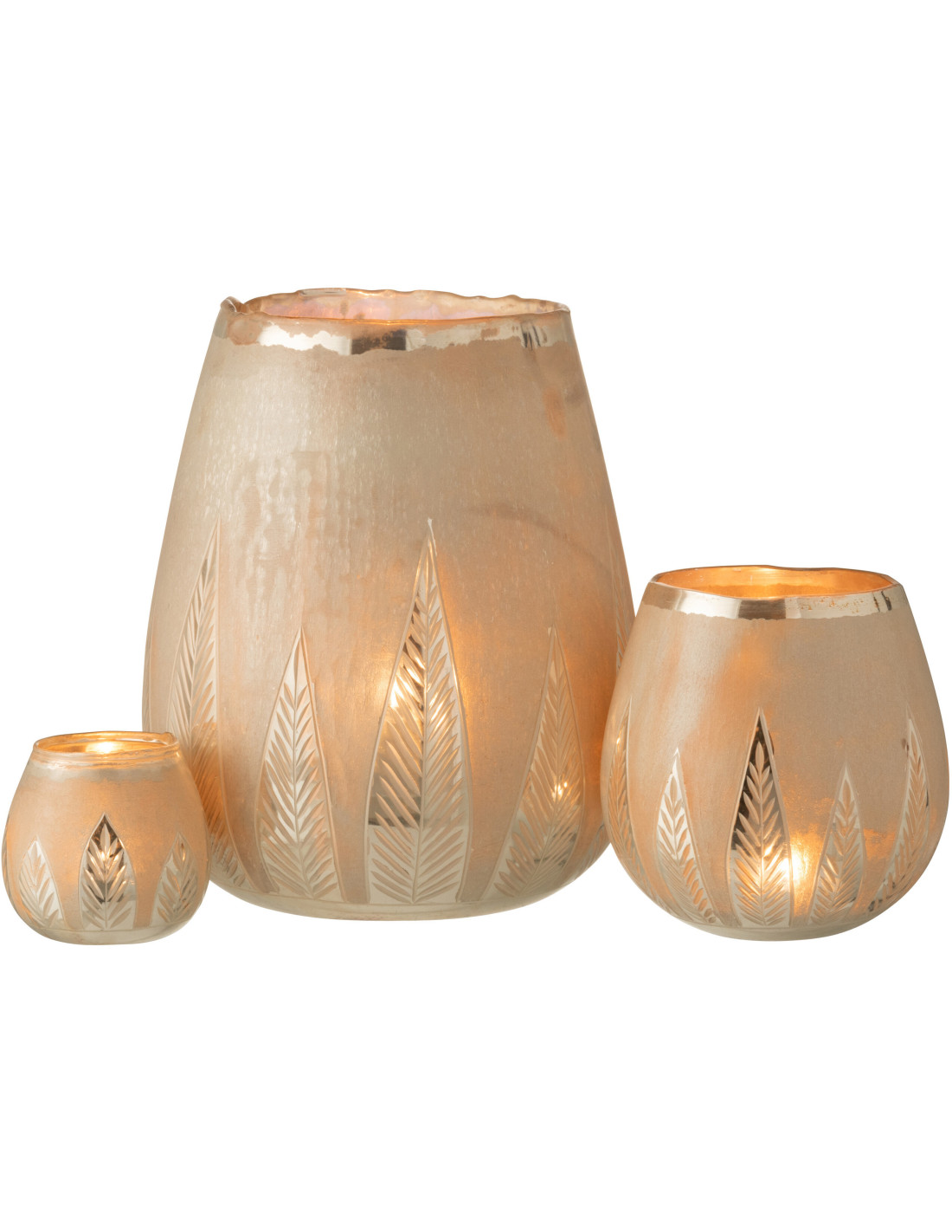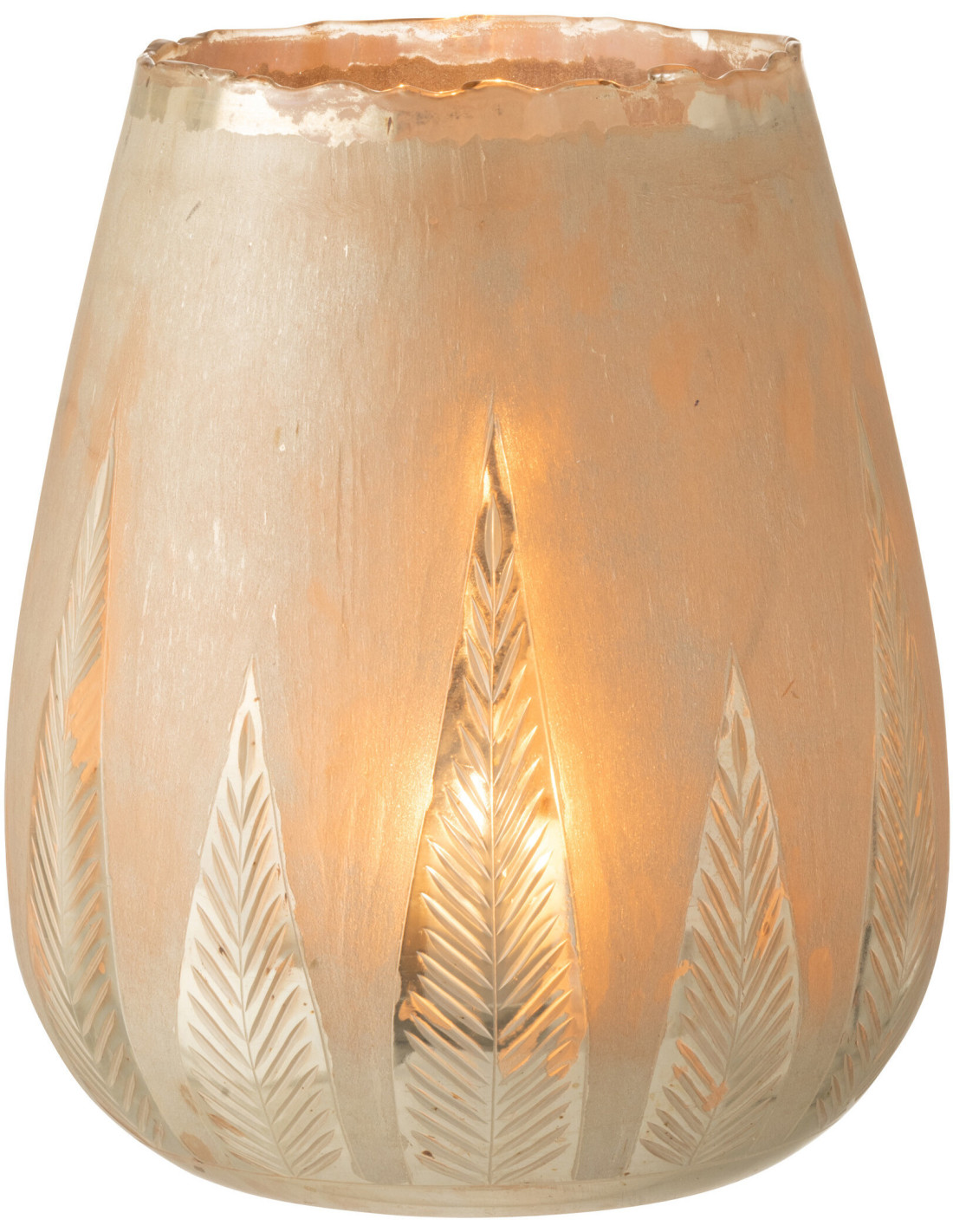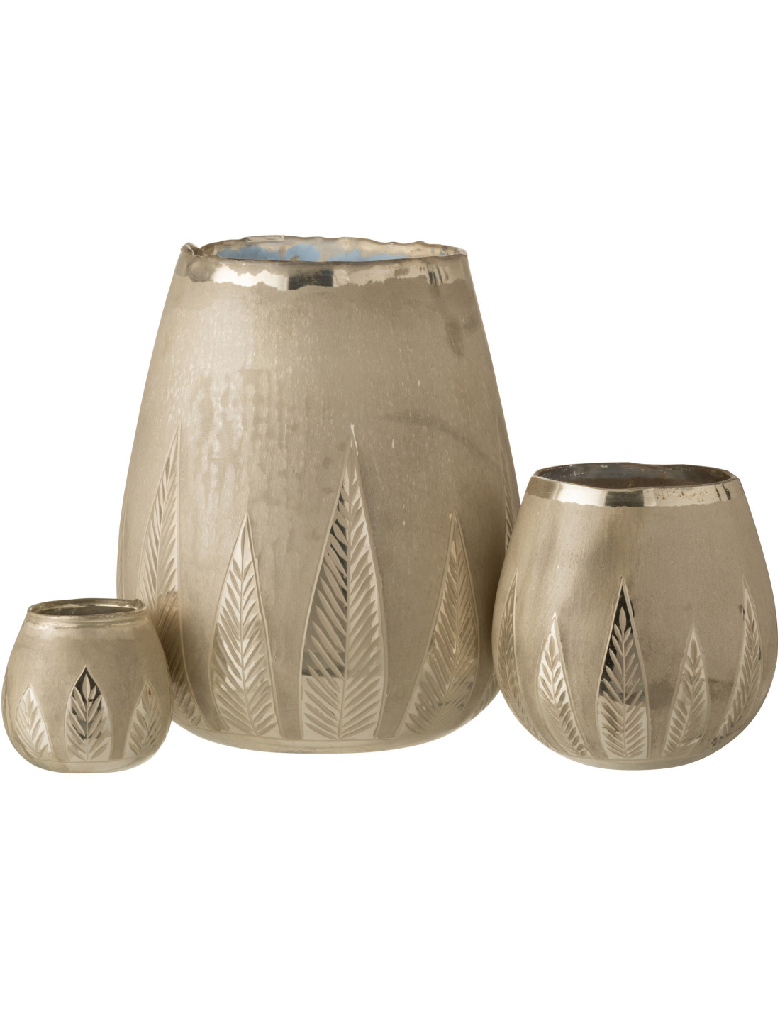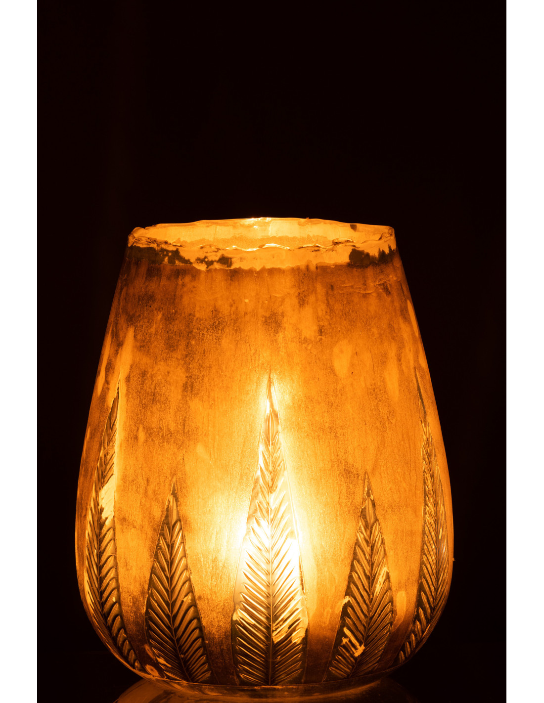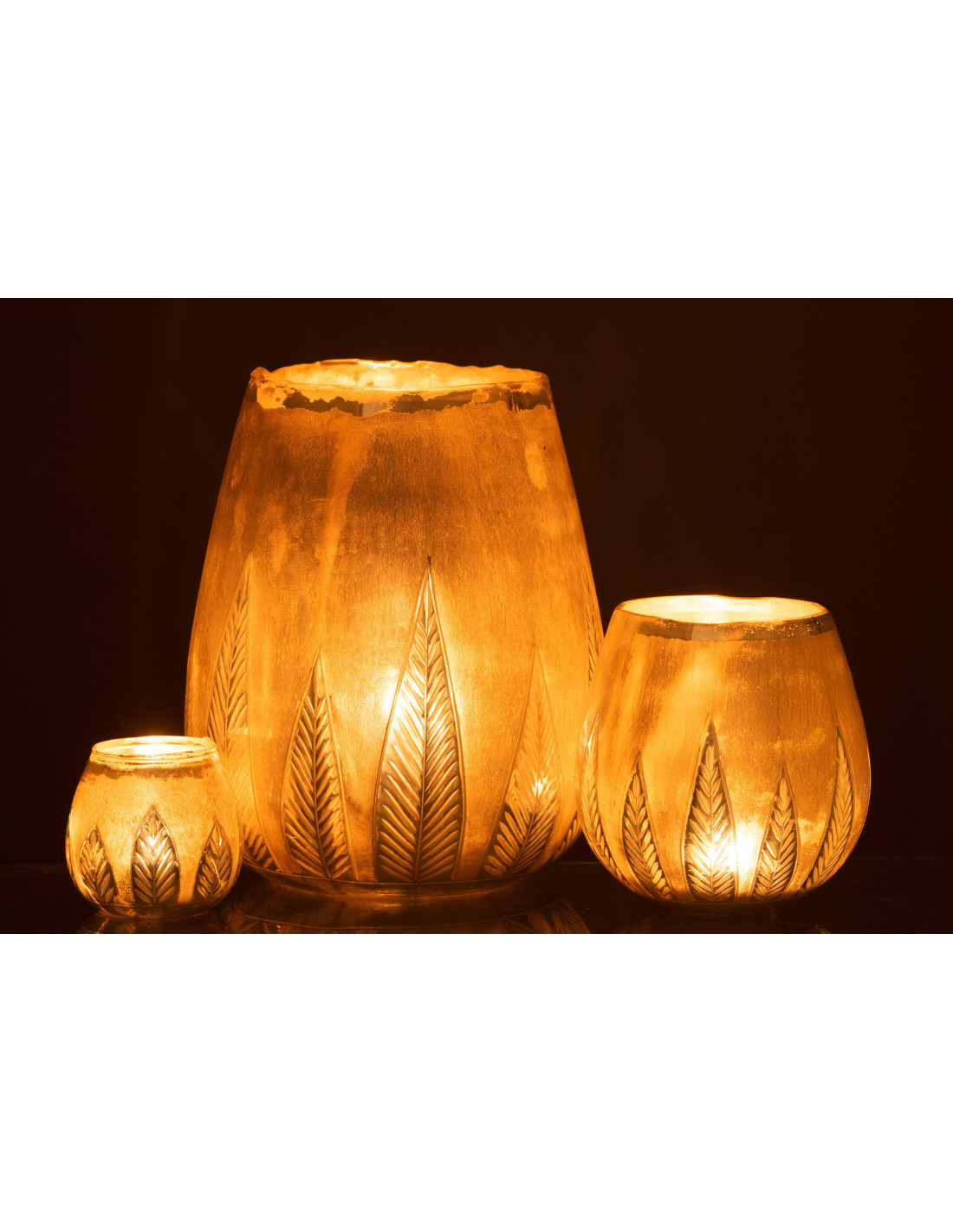 Photophore moderne XXL Diamètre 25 cm en Verre Argenté Motif feuilles Nialen