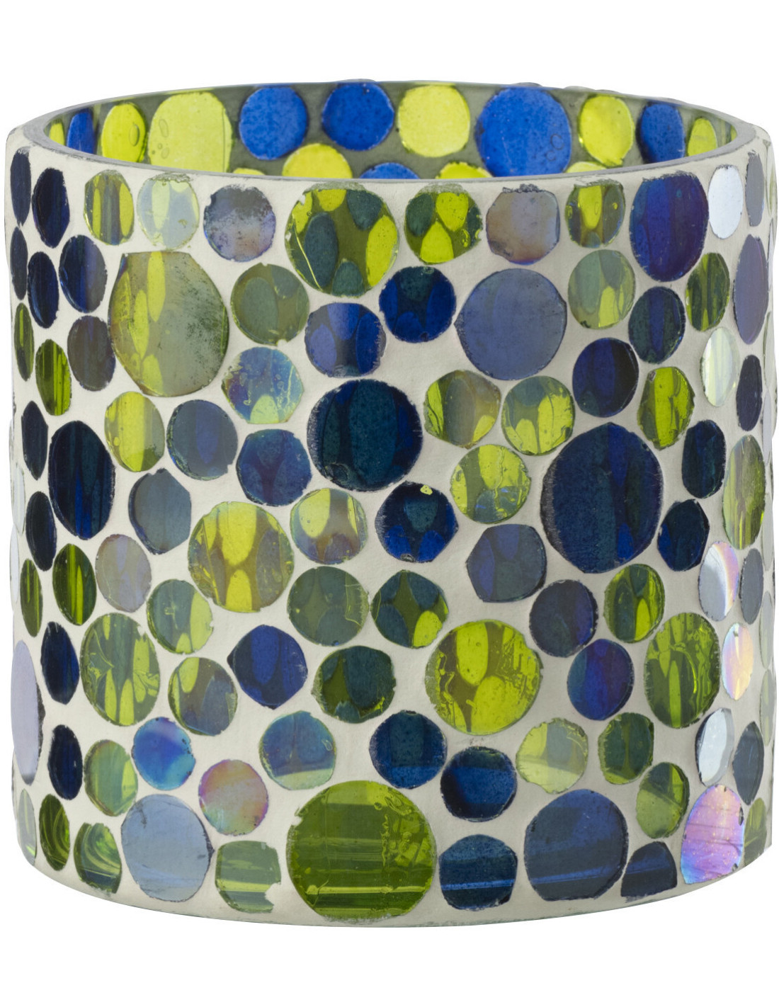 Mosaïka transforme la lumière d’une bougie en un jeu visuel vivant. Les nuances de bleu, de vert et de blanc créent une ambiance fraîche et lumineuse.