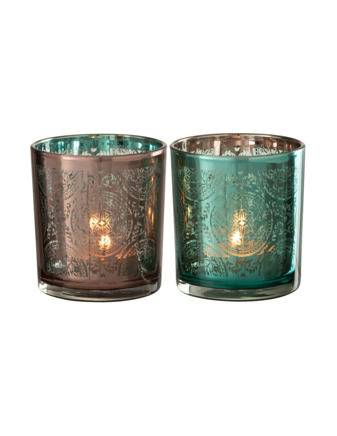 Photophore oriental Diamètre 8 cm en Verre Bleu azur Cuivre Elman (Lot de 2) - 1