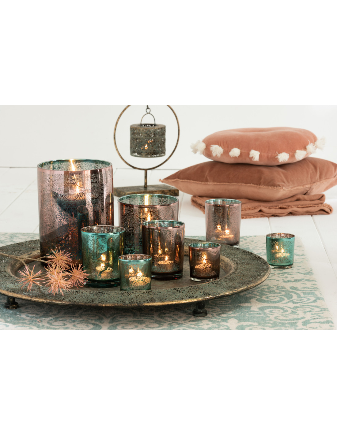 Photophore oriental Diamètre 8 cm en Verre Bleu azur Cuivre Elman (Lot de 2) - 5