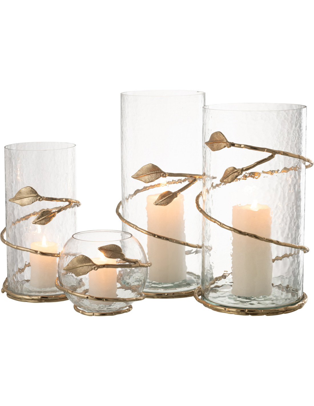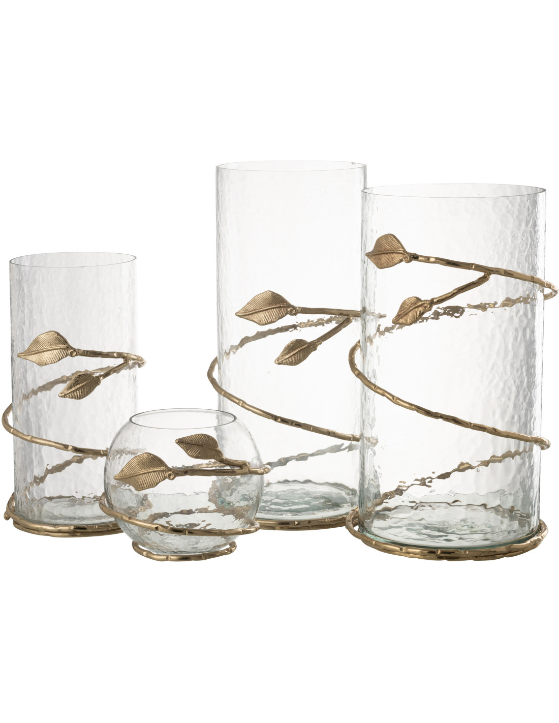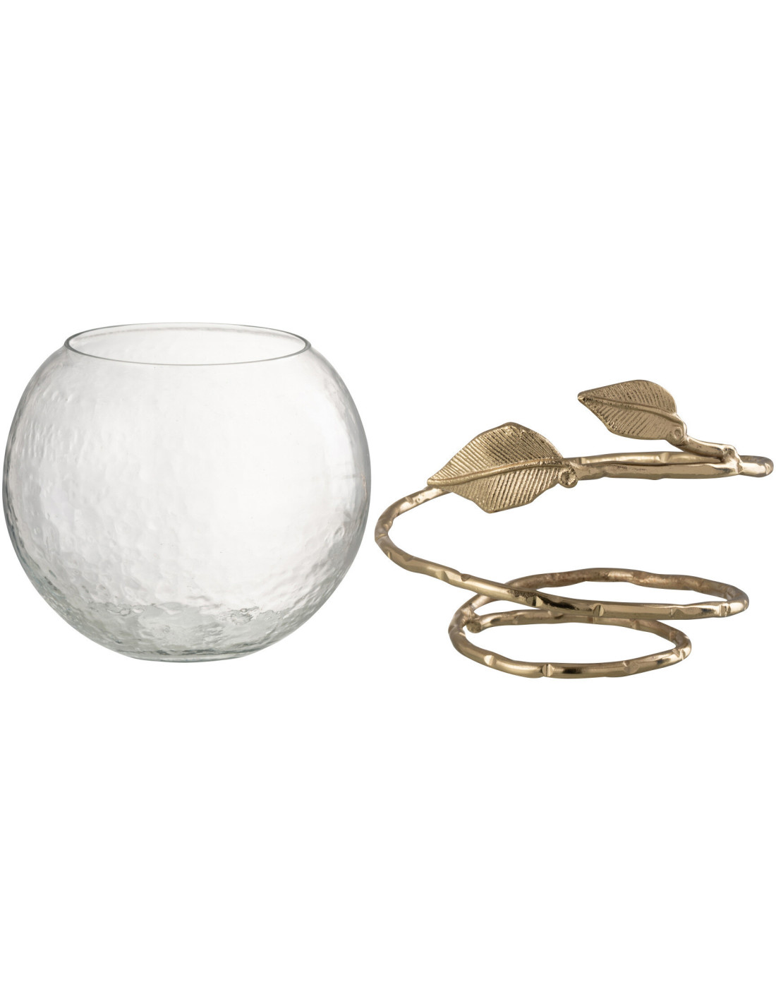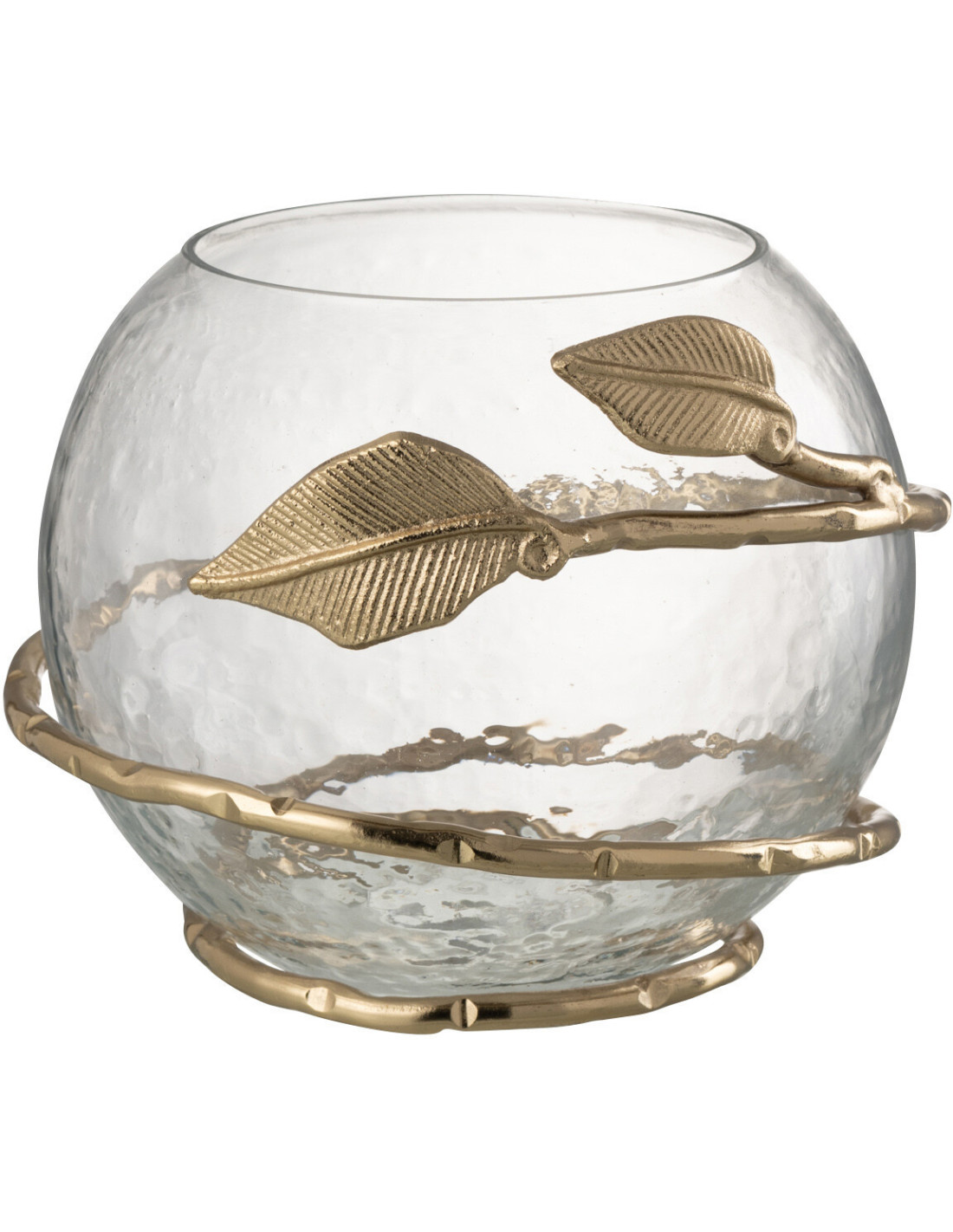 Photophore original boule Diamètre 10 cm en Verre Transparent Métal Doré Motif feuille Koryn