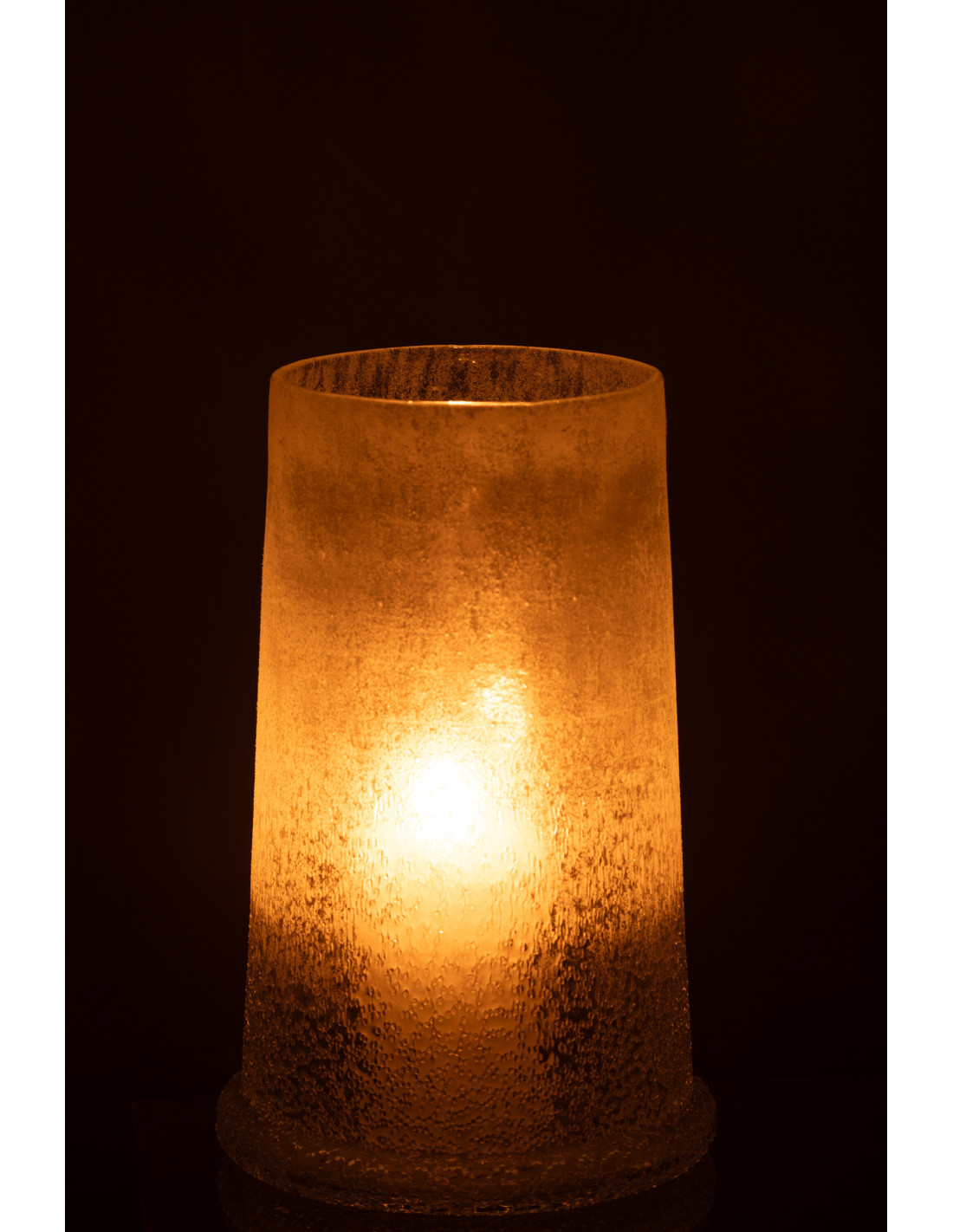 Photophore original conique XL Diamètre 17 cm en Verre Blanc Motif givré Sugar
