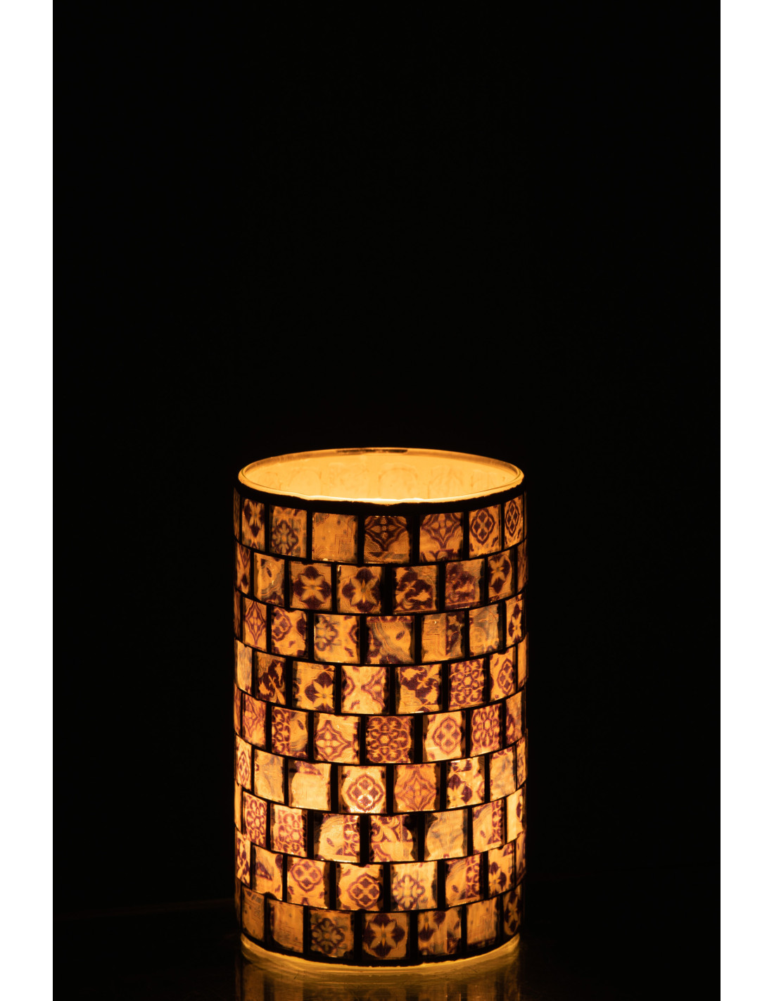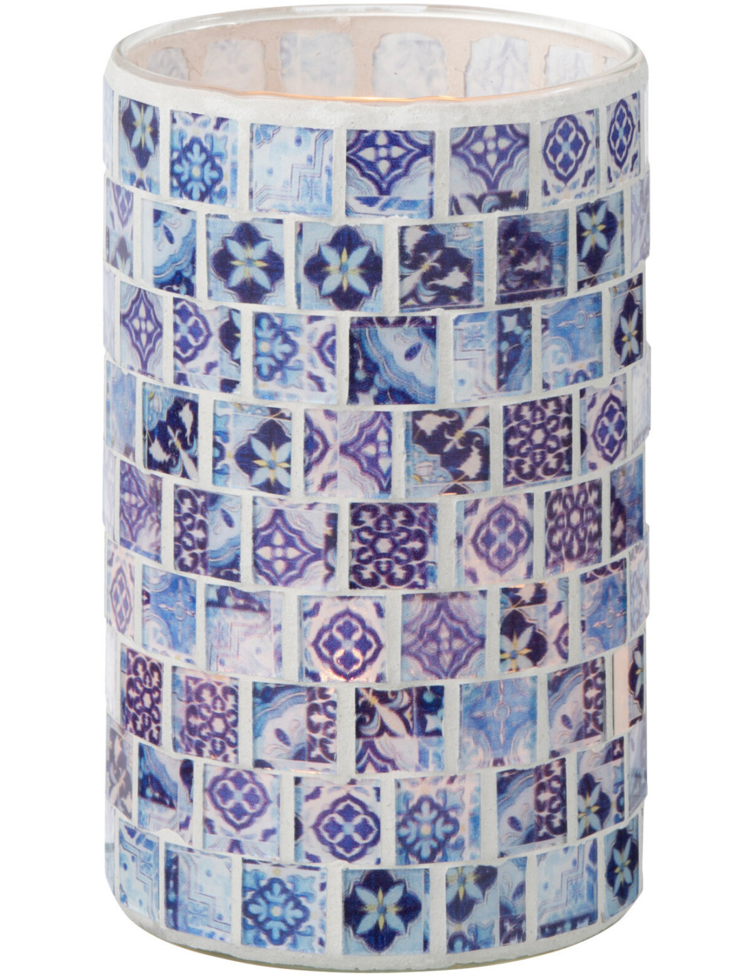 Photophore original cylindre Diamètre 9 cm en Verre Bleu jean Motif mosaïque Klavin