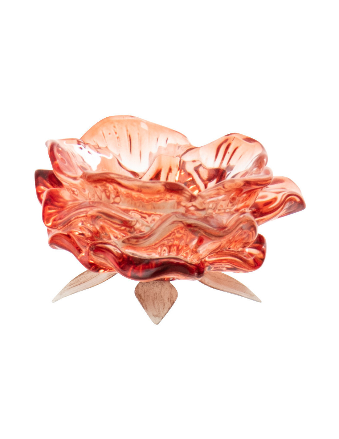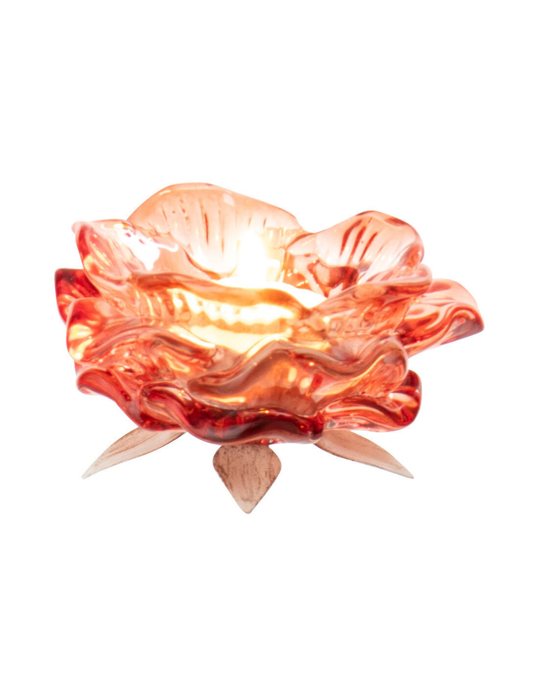 Photophore original Fleur 9 cm Verre Orange Métal Blanc cassé Sunflya