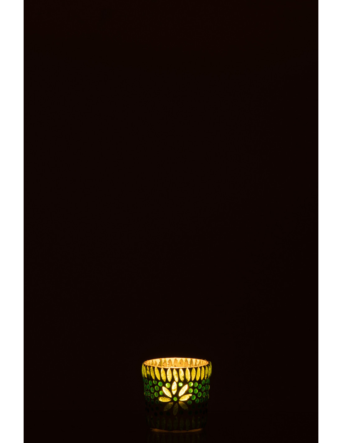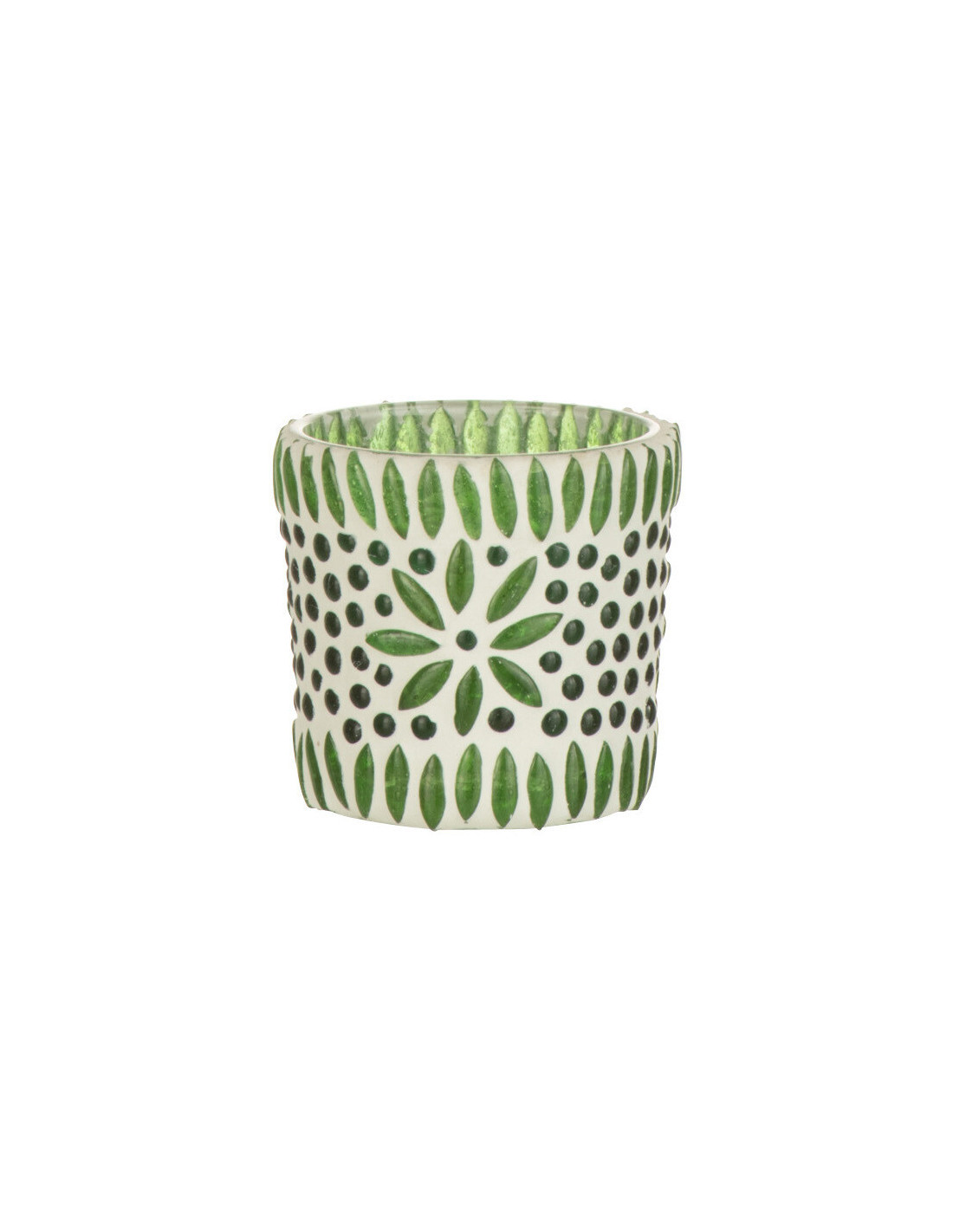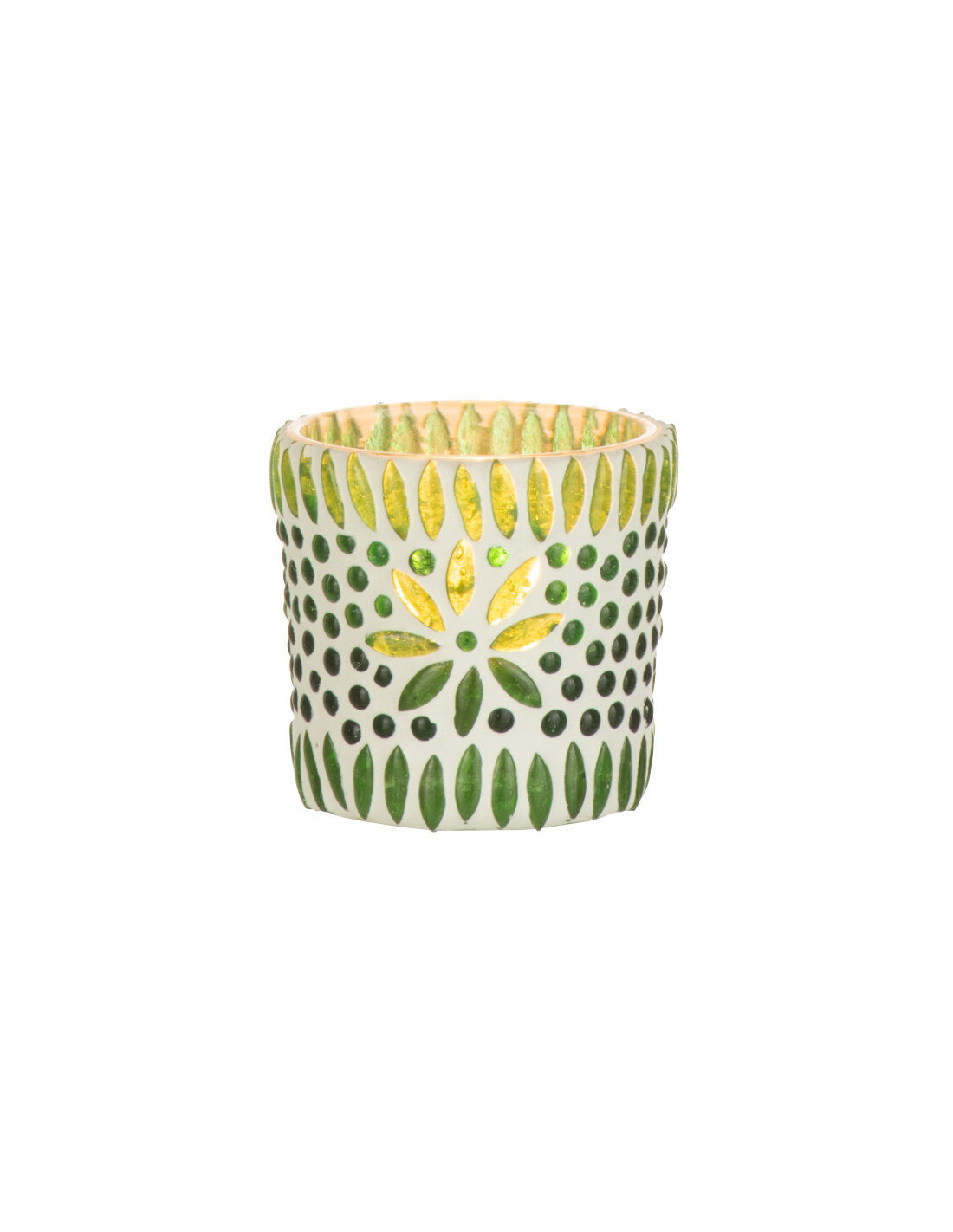 Photophore original Mosaïque Diamètre 6 cm en Verre Vert Blanc Motif fleurs Bram