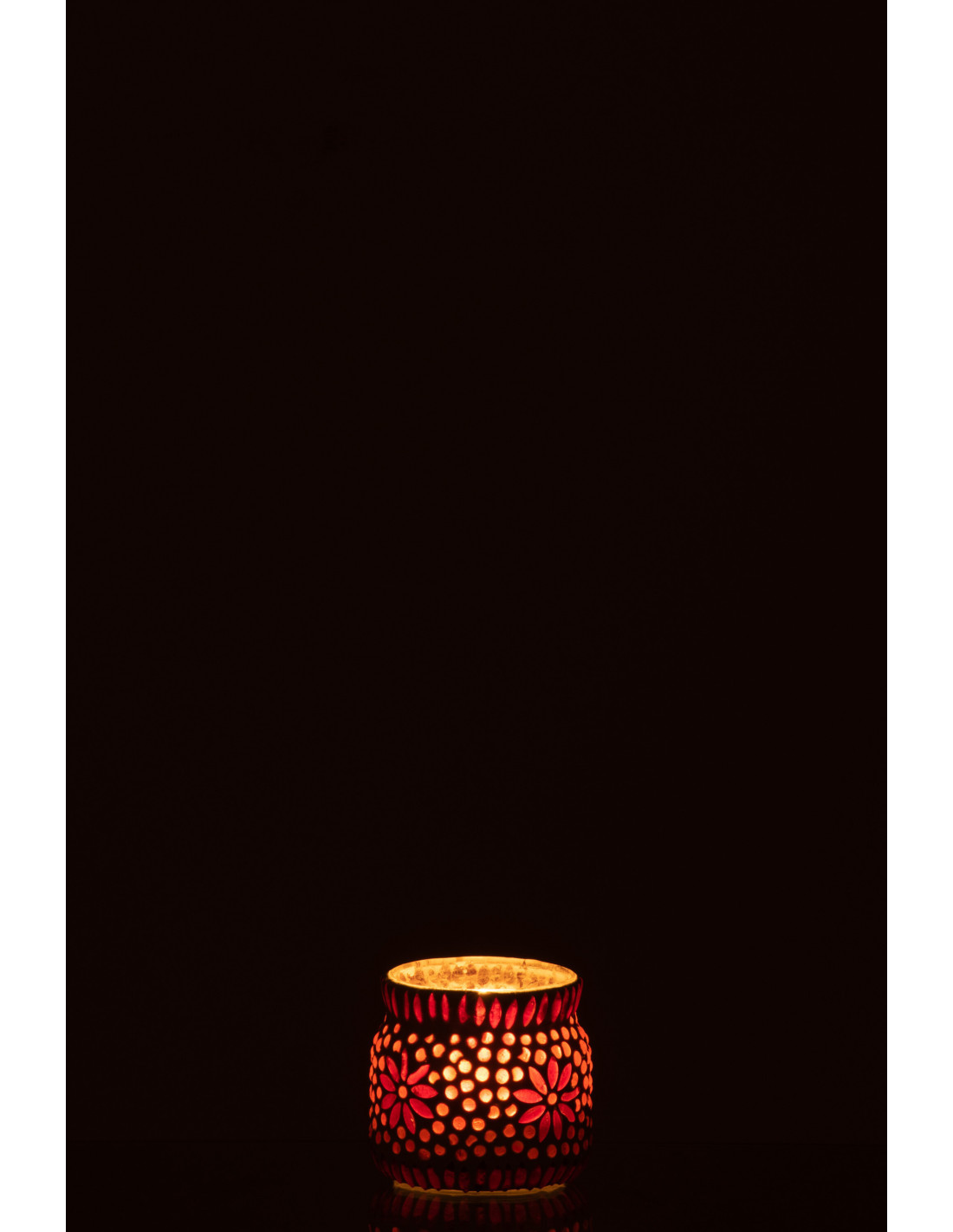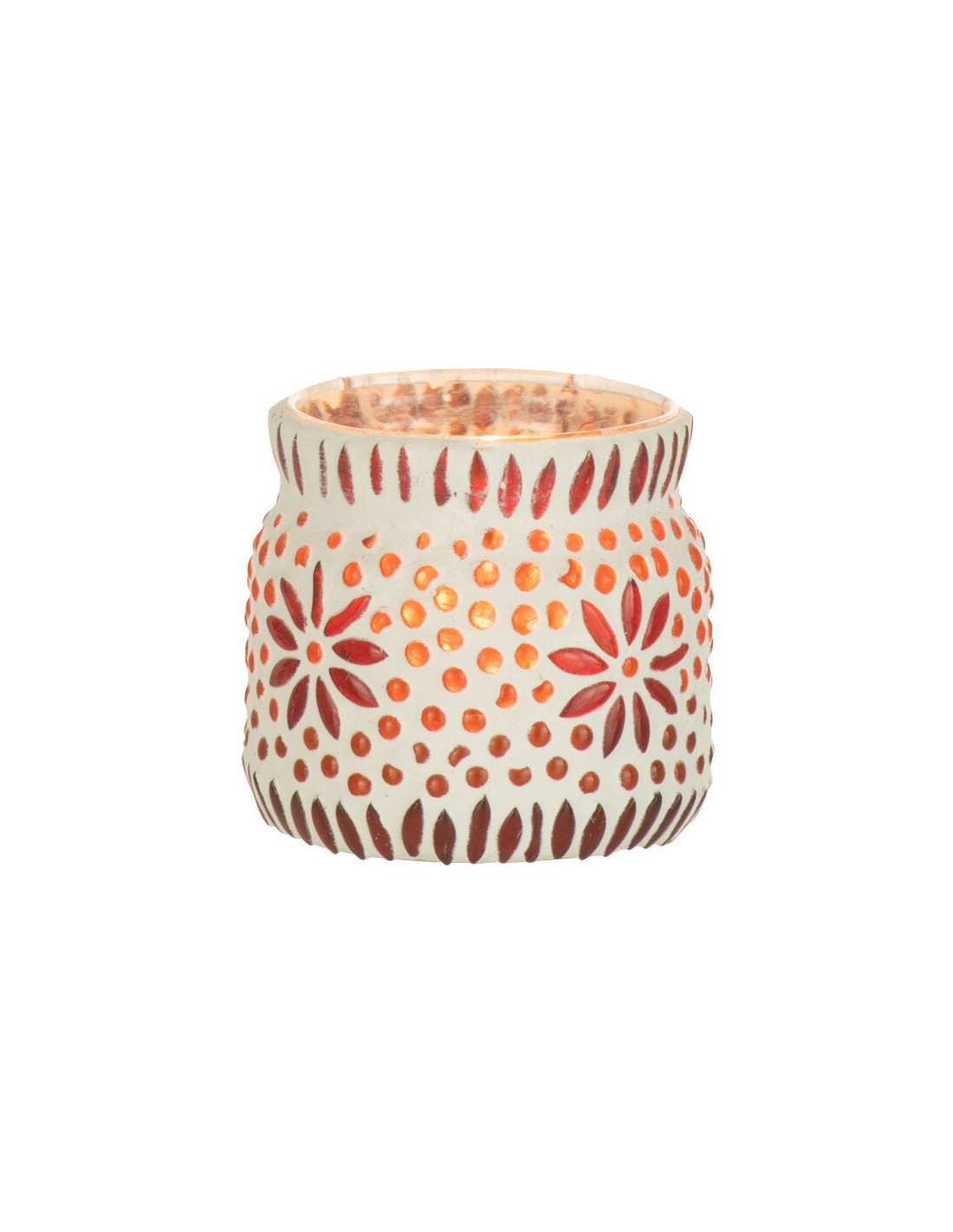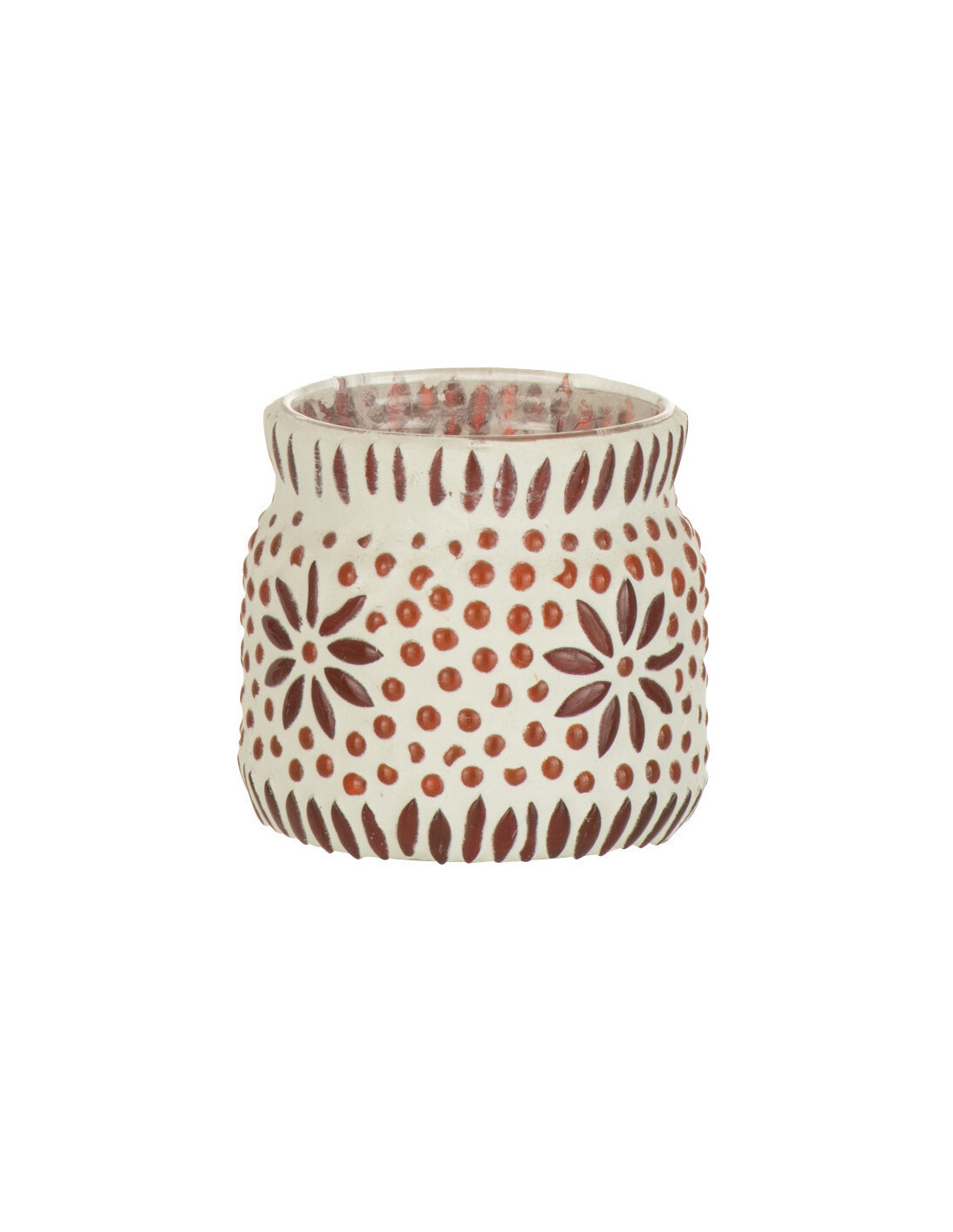 Photophore original Mosaïque Diamètre 8 cm en Verre Rouge Blanc Motif fleurs Bram