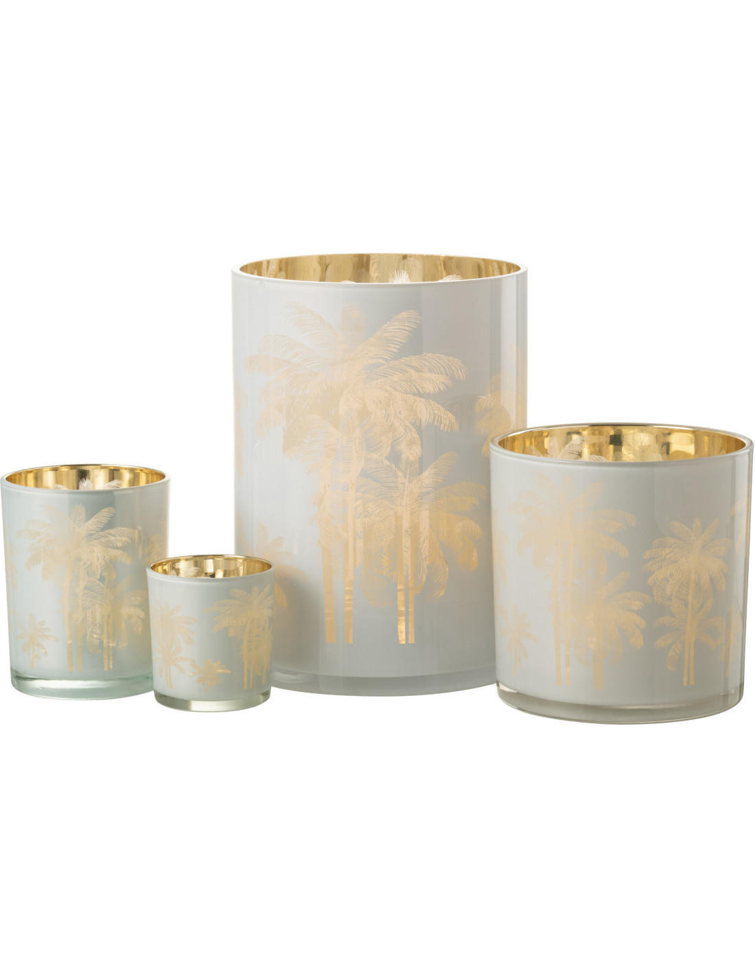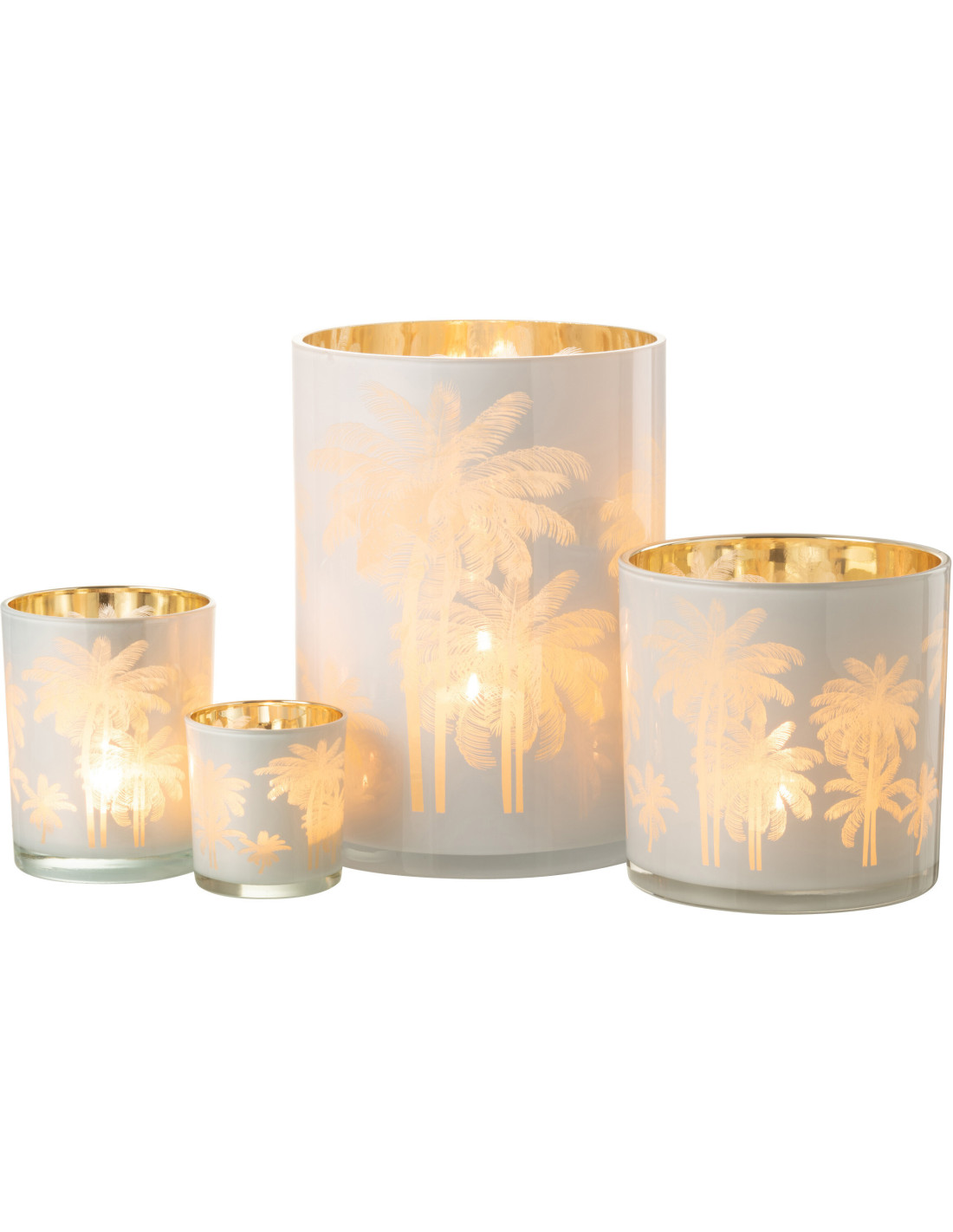 Photophore original Palmiers XL Diamètre 18 cm en Verre Bleu Doré Holidia