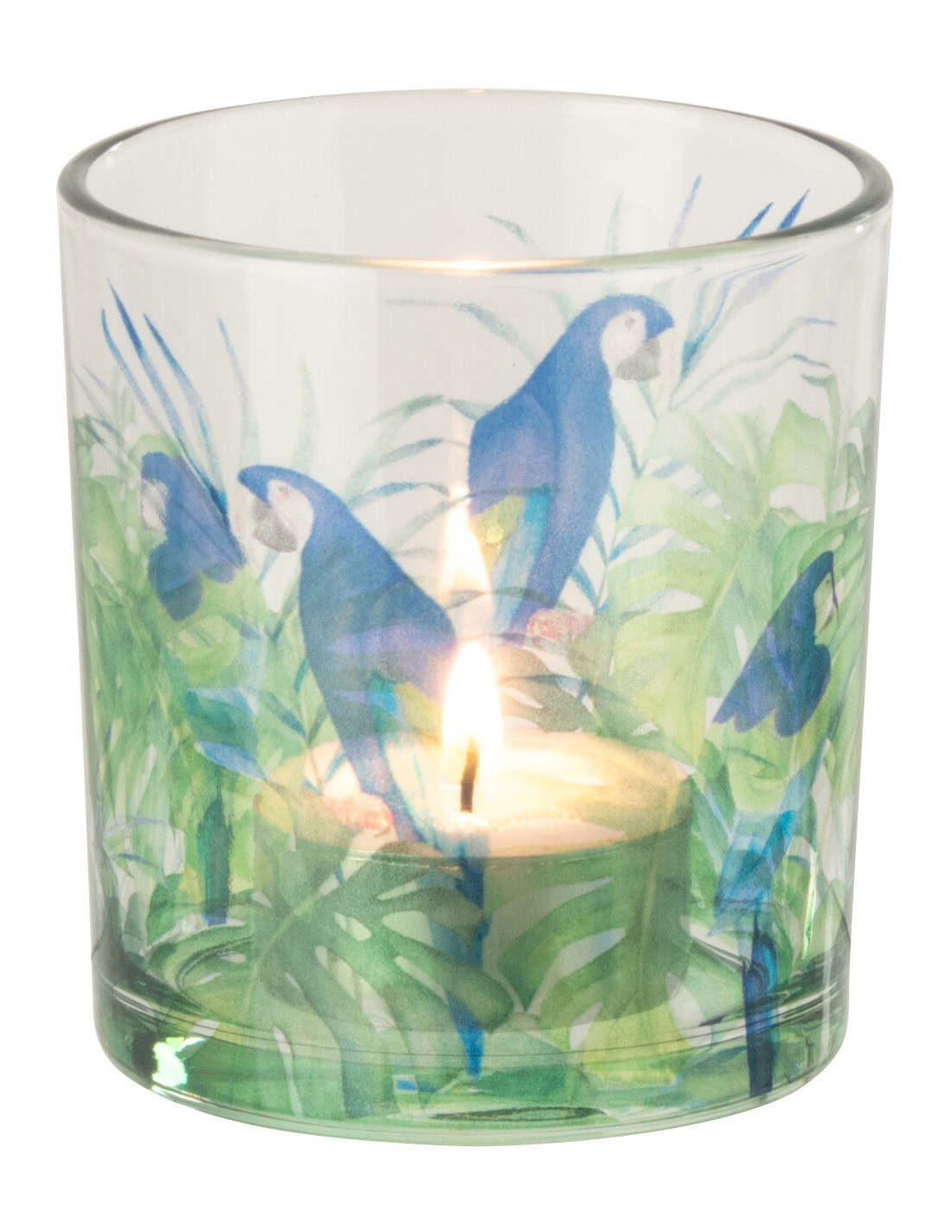 Photophore original Perroquet Verre Bleu Vert Tropica