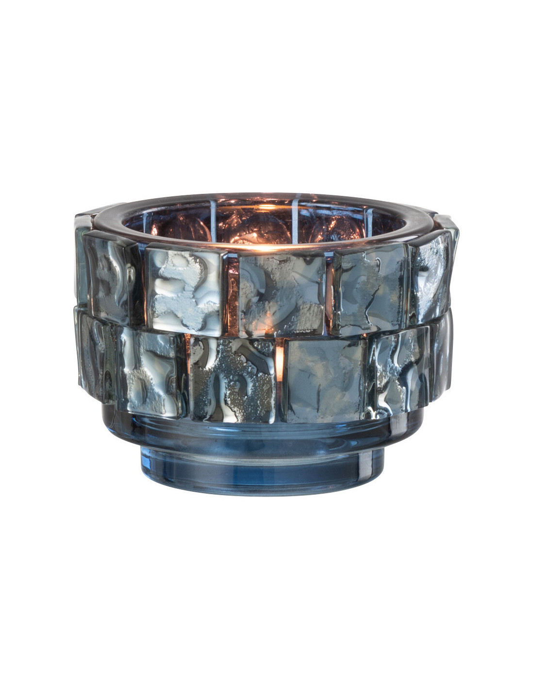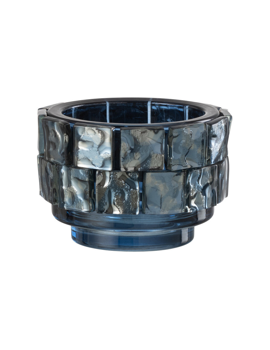 Photophore original rond Diamètre 10 cm en Verre Bleu foncé Motif carrés Wynell