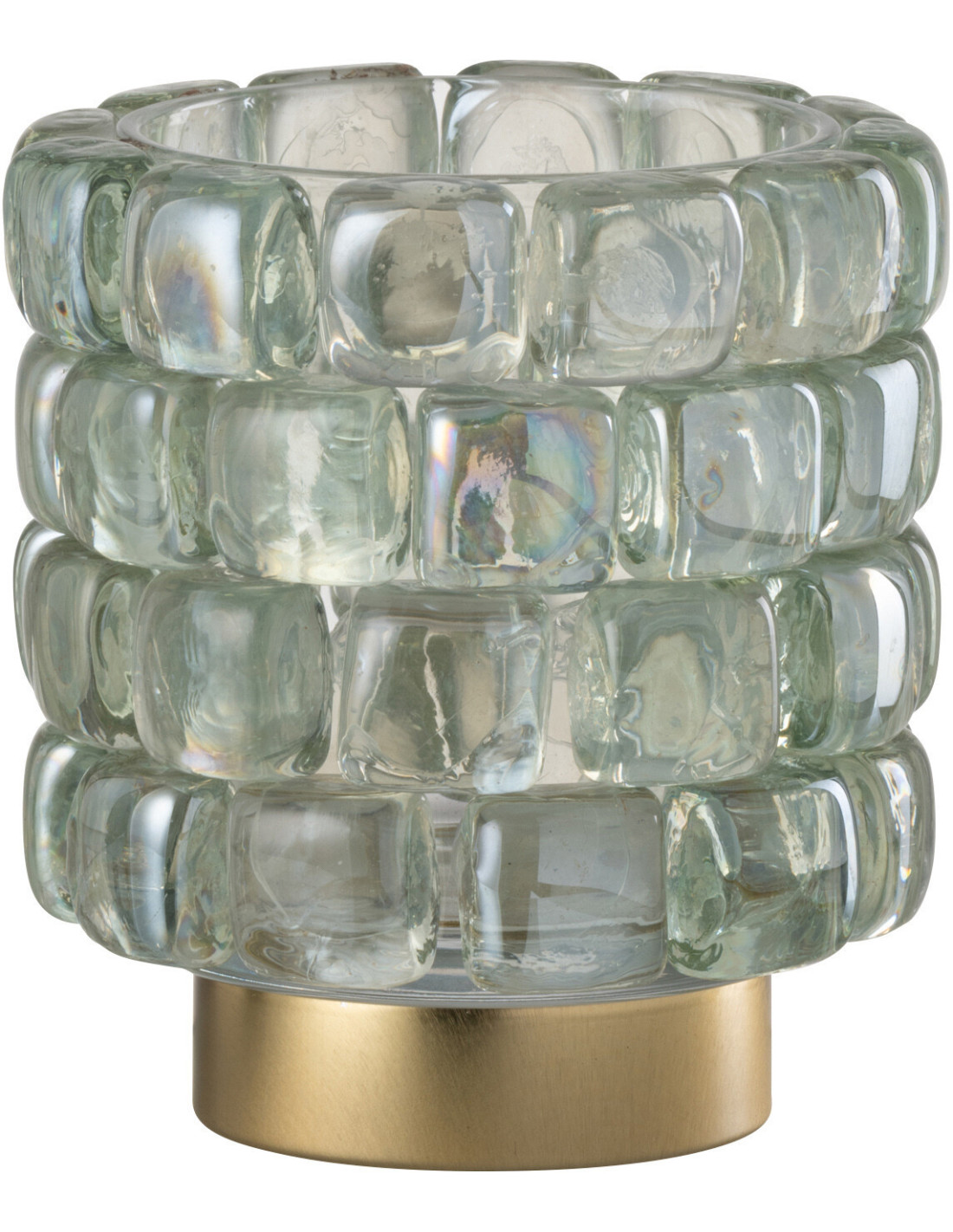 Photophore original rond Diamètre 12 cm en Verre Transparent Doré Motif carrés Kylara
