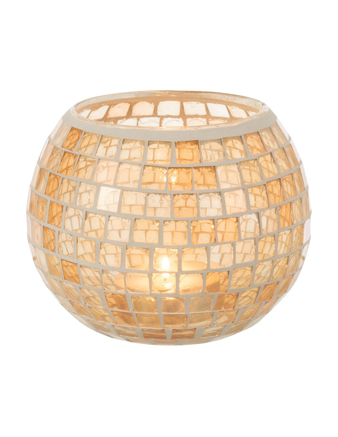 Photophore original rond XL Diamètre 15 cm en Verre Orange Motif mosaïque Maris