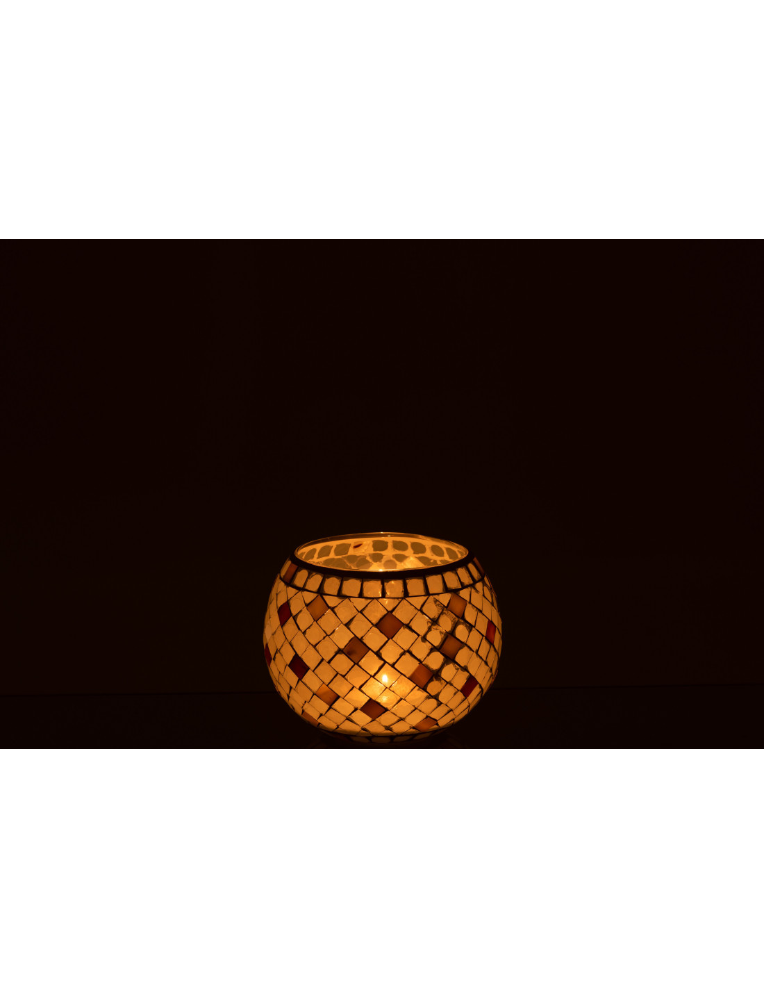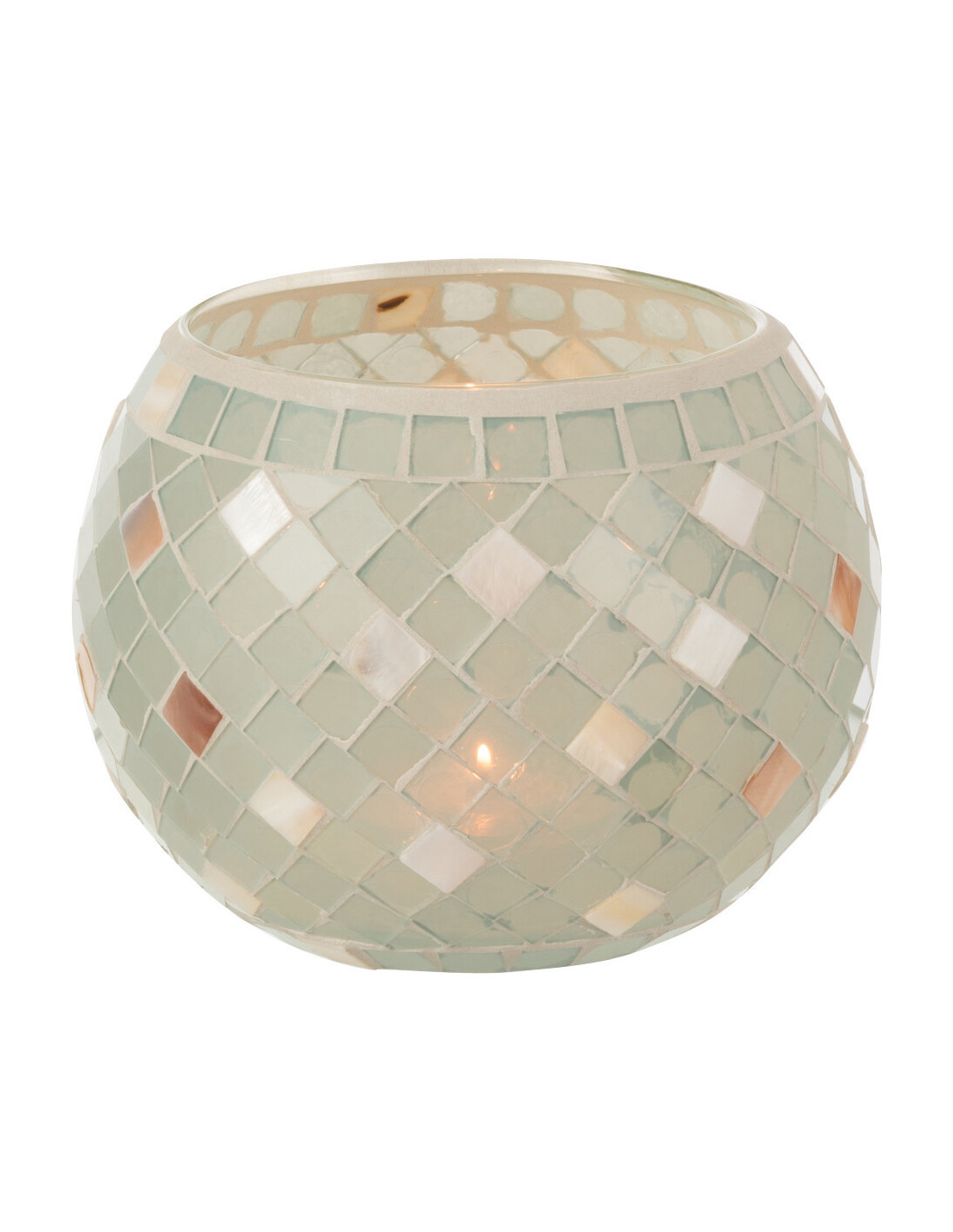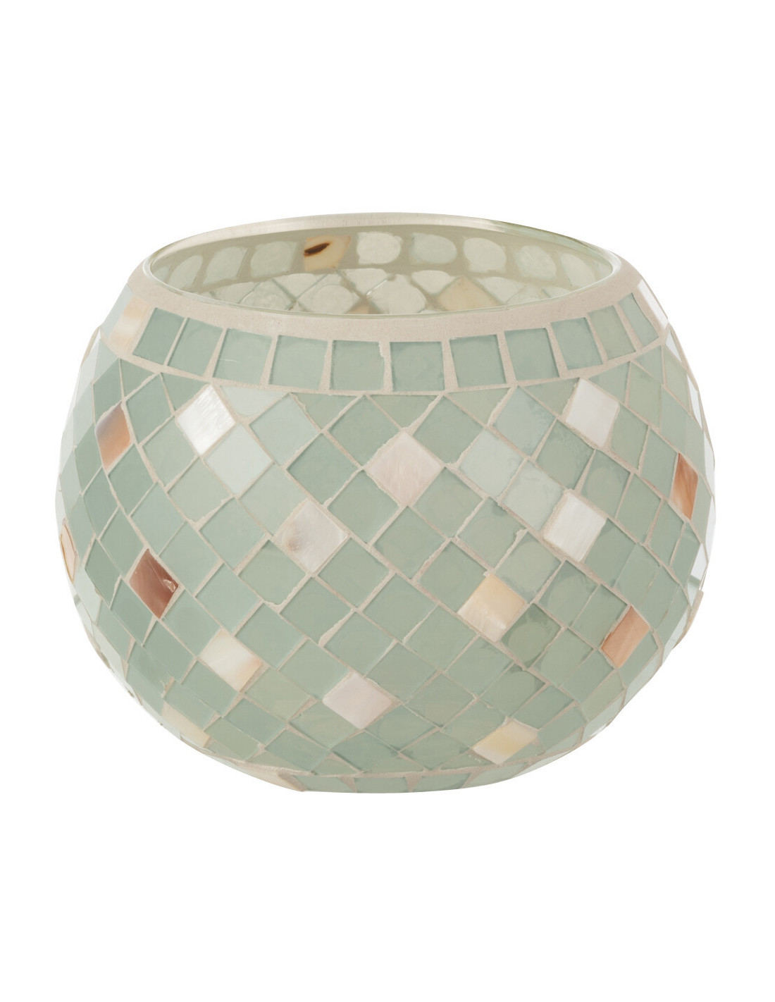Photophore original rond XL Diamètre 15 cm en Verre Vert clair Gris nacré Motif mosaïque Lomos