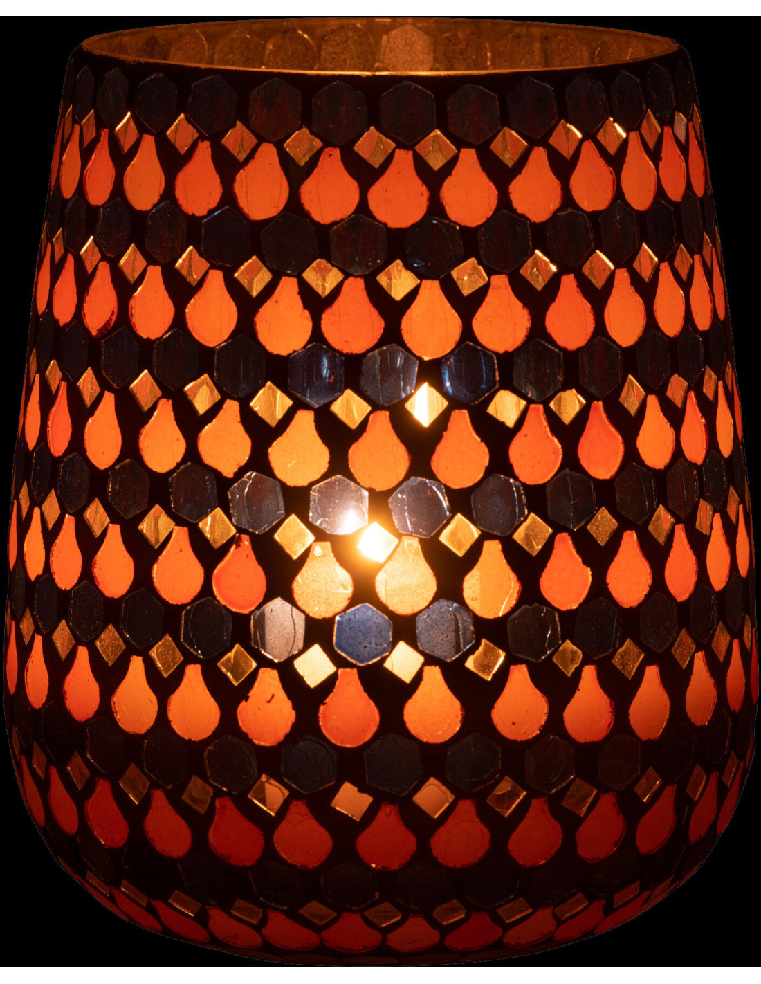Photophore Ovale Diamètre 17 cm en Verre Bleu Orange Effet mosaïque Motif gouttes Pectino - 1