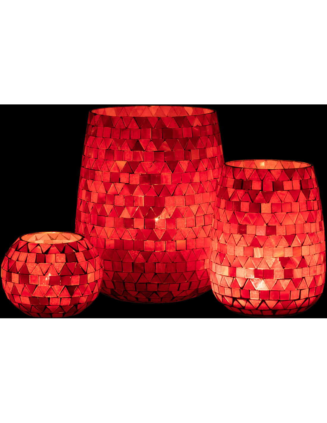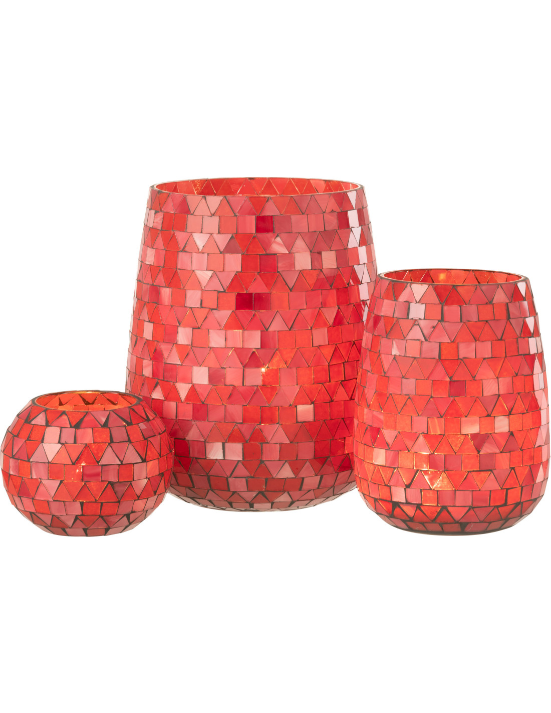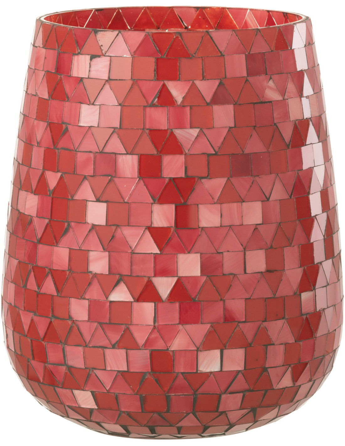 Photophore Ovale Diamètre 17 cm en Verre Rouge Rose Effet mosaïque Motif triangles Volubi - 1