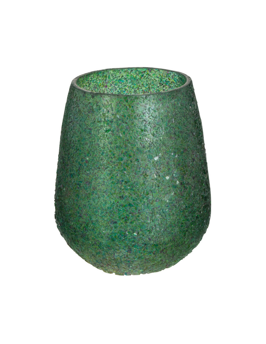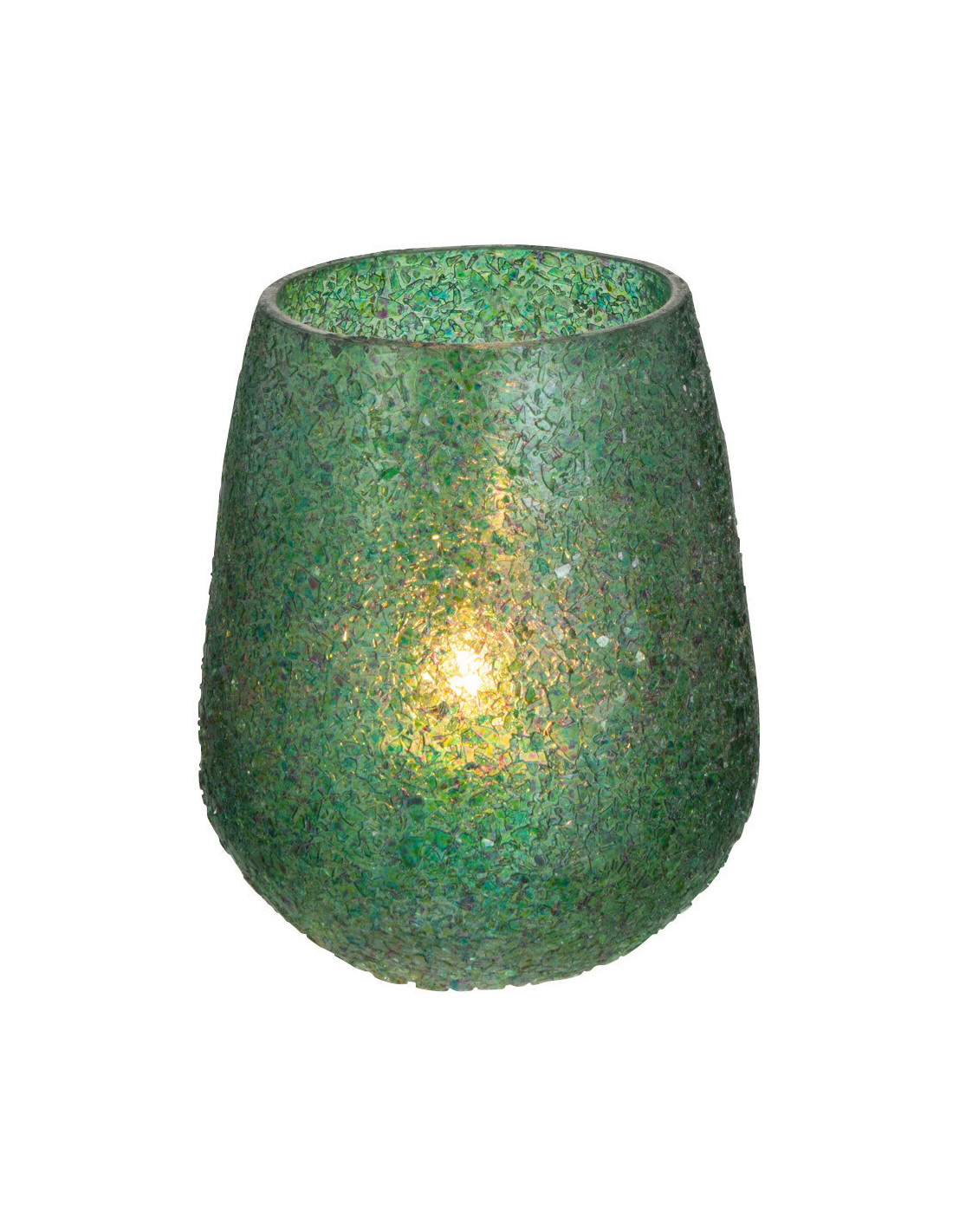 Photophore Ovale Tom Diamètre 10 cm en Verre Vert Effet paillettes - 1