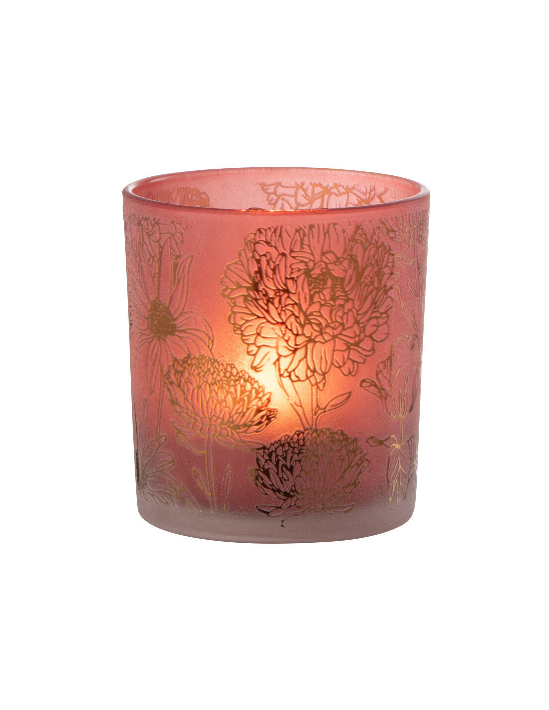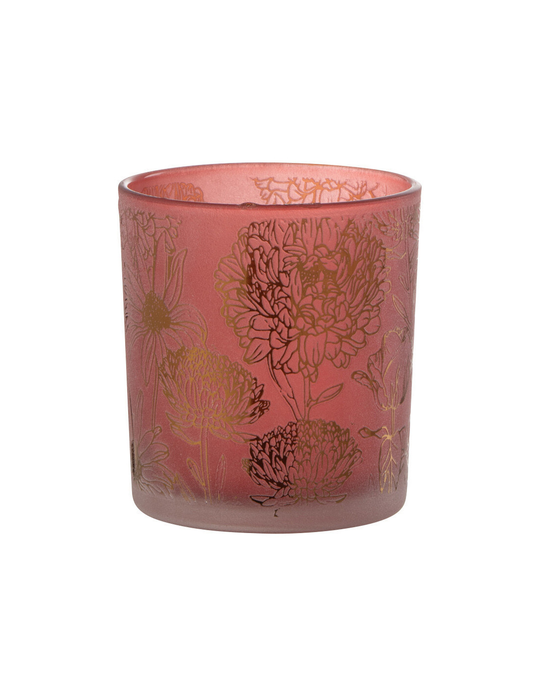 Photophore romantique Diamètre 7 cm en Verre Rouge Doré Motif fleurs Selara - 1