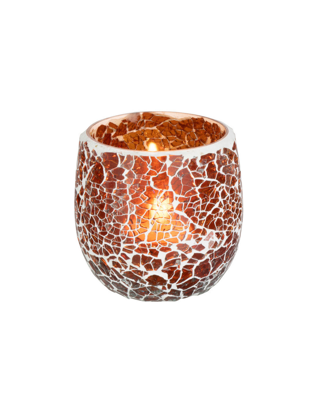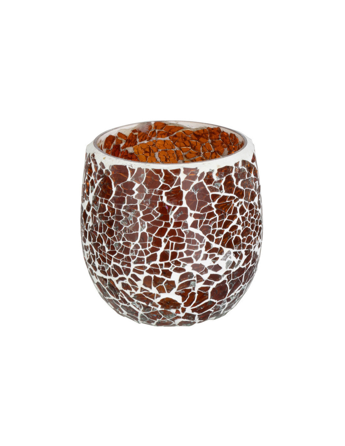 Photophore Rond Ali Diamètre 9 cm en Verre Marron Motif mosaïque - 1