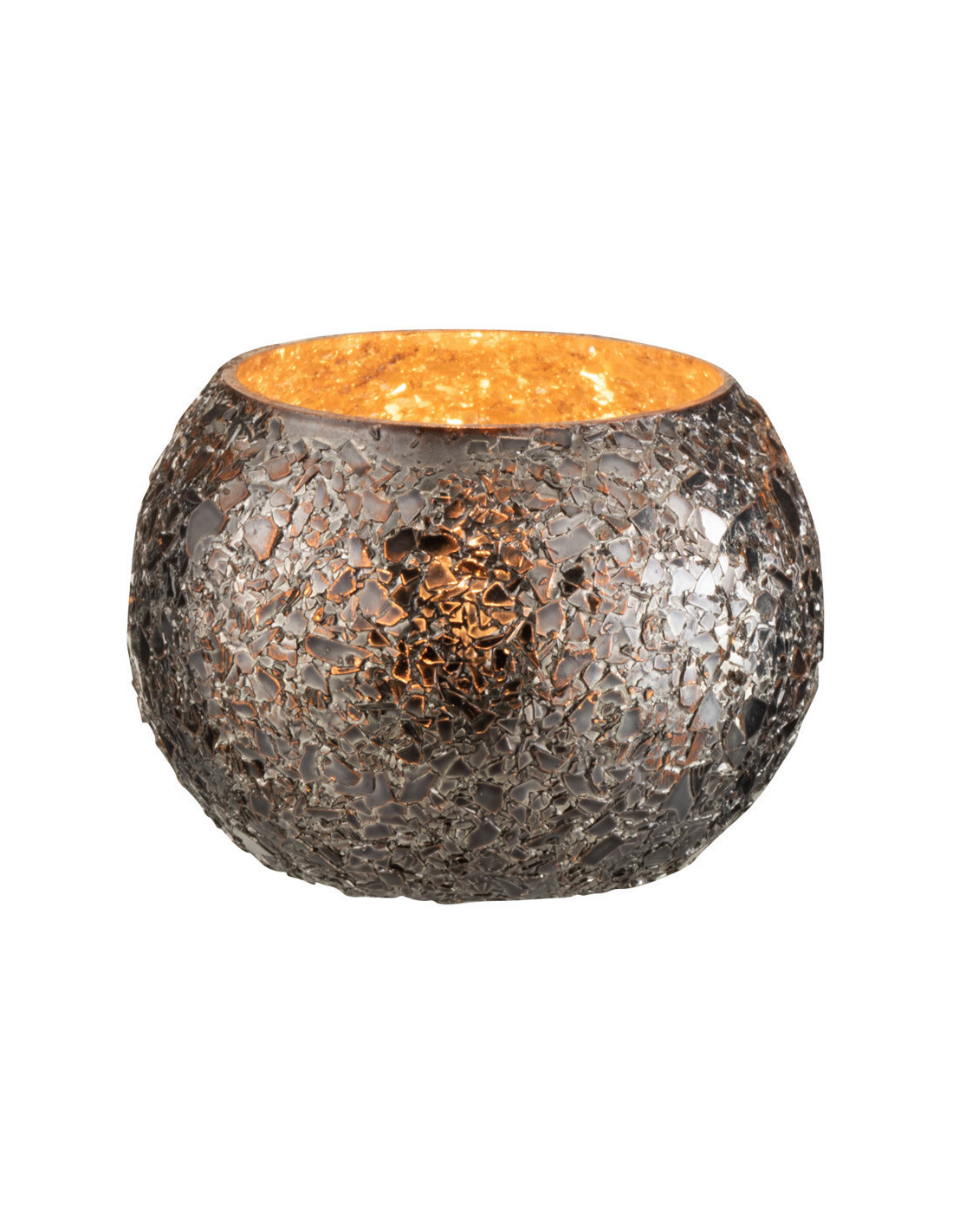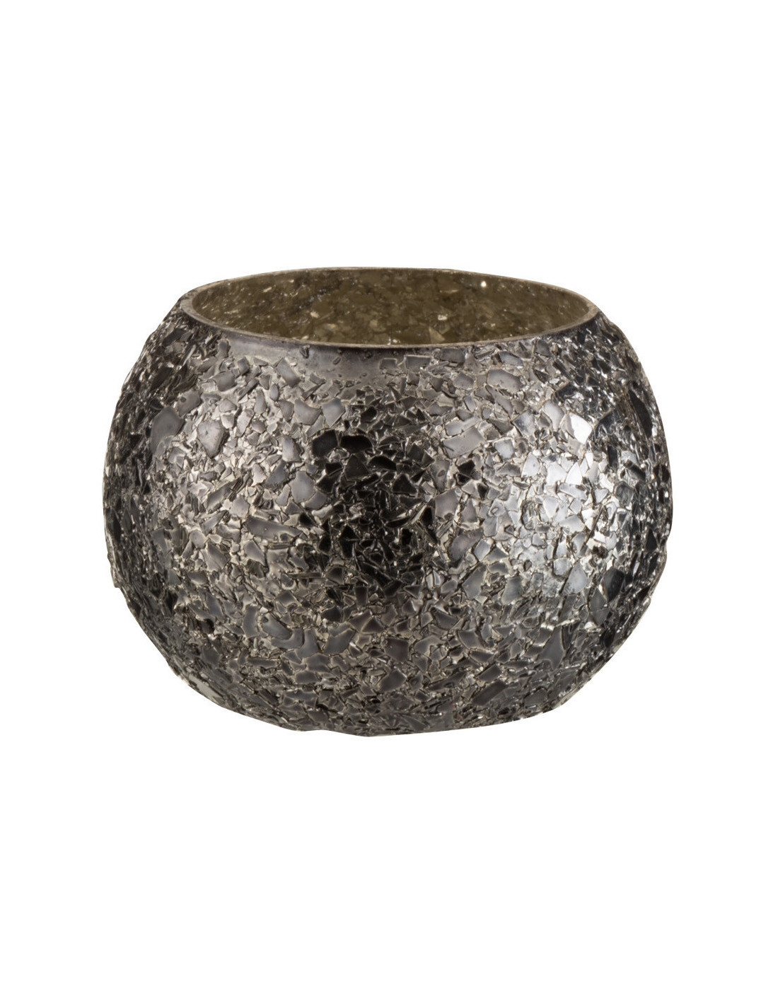 Photophore Rond Broka Diamètre 10 cm en Verre Noir Motif éclats de verre