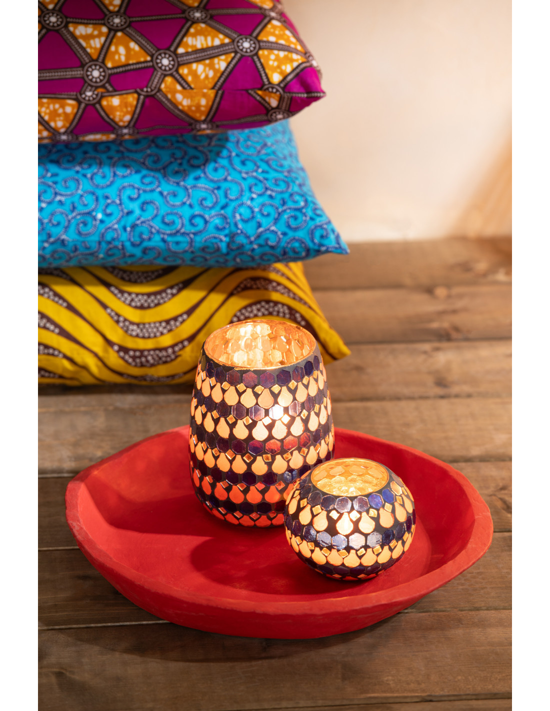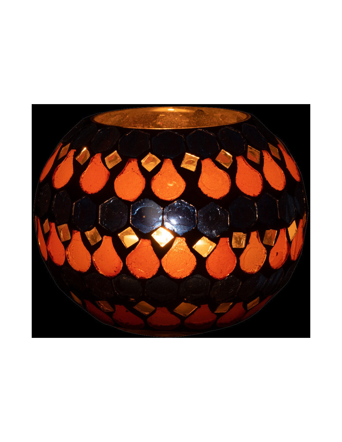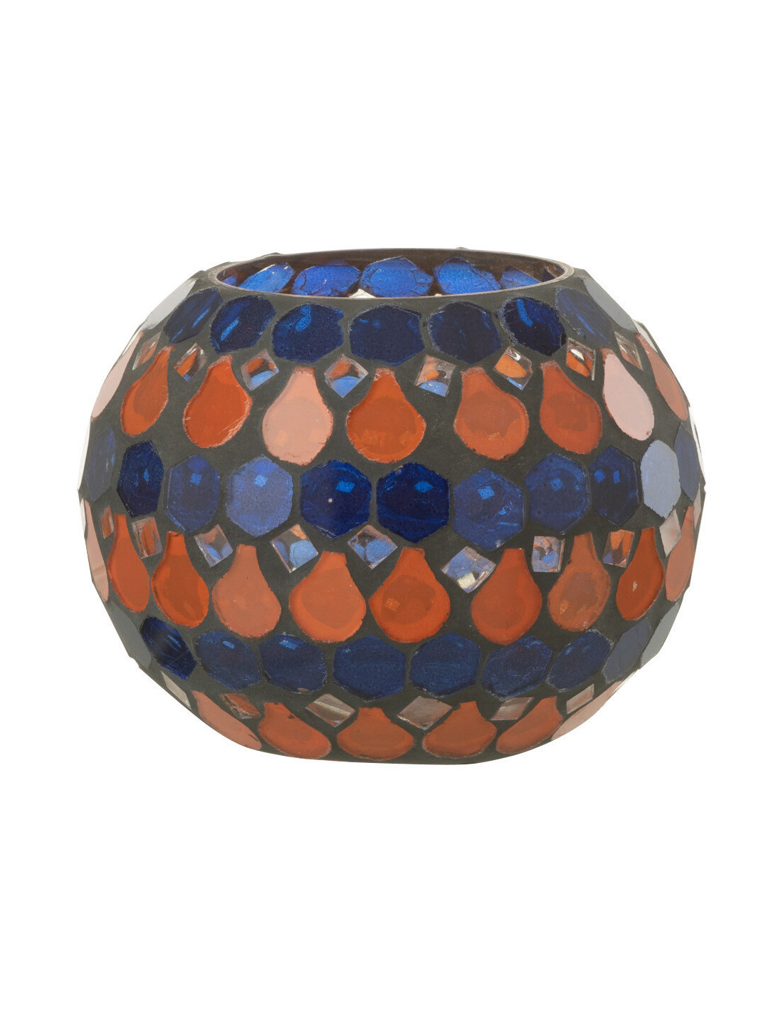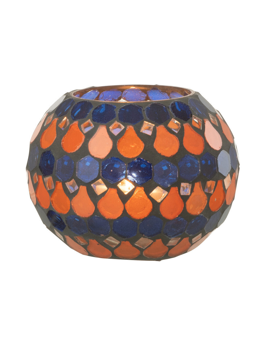 Photophore Rond Diamètre 10 cm en Verre Bleu Orange Effet mosaïque Motif gouttes Pectino - 1