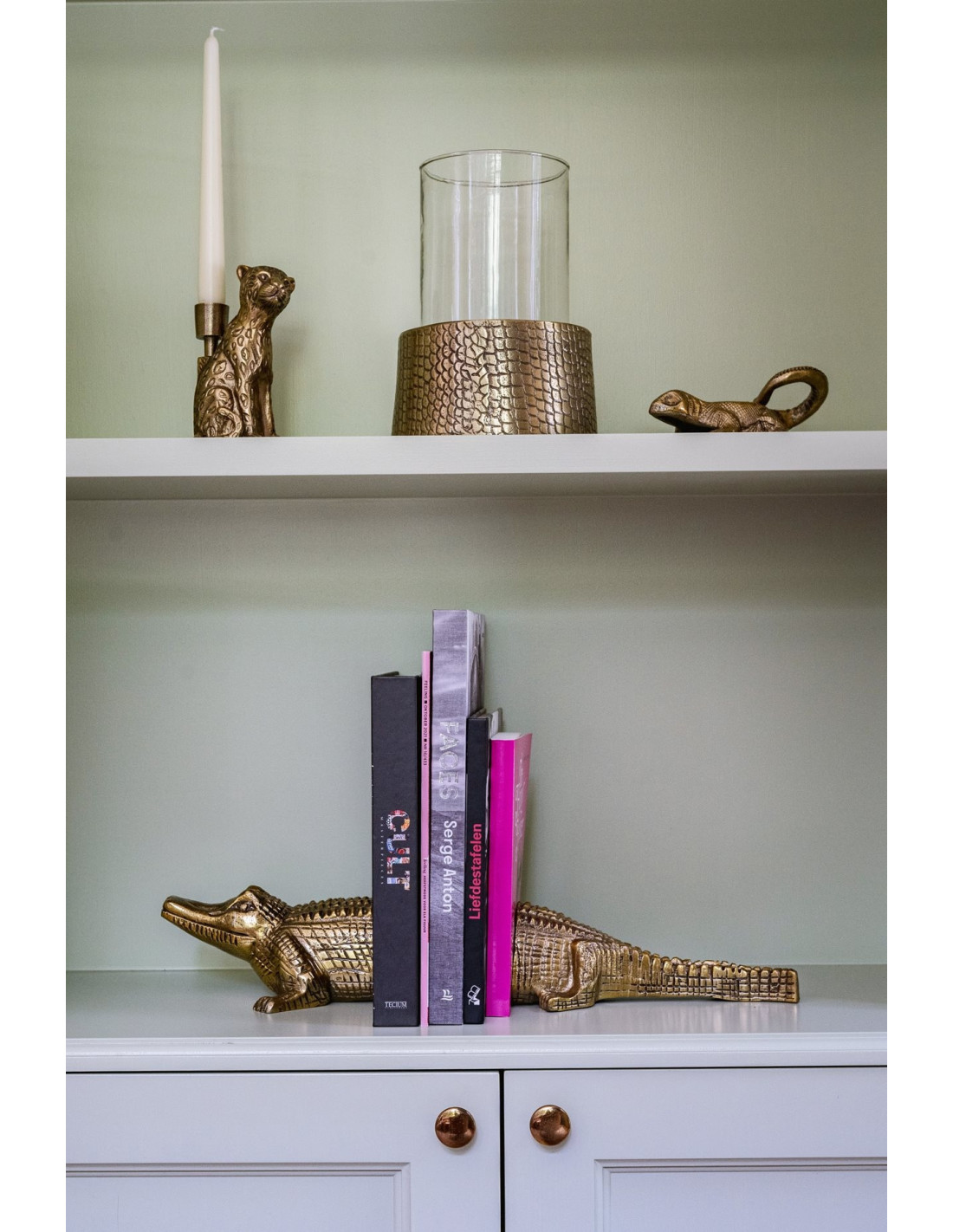 Photophore Rond Diamètre 17 cm en Verre Transparent Métal Doré Motif peau de crocodile The Croco