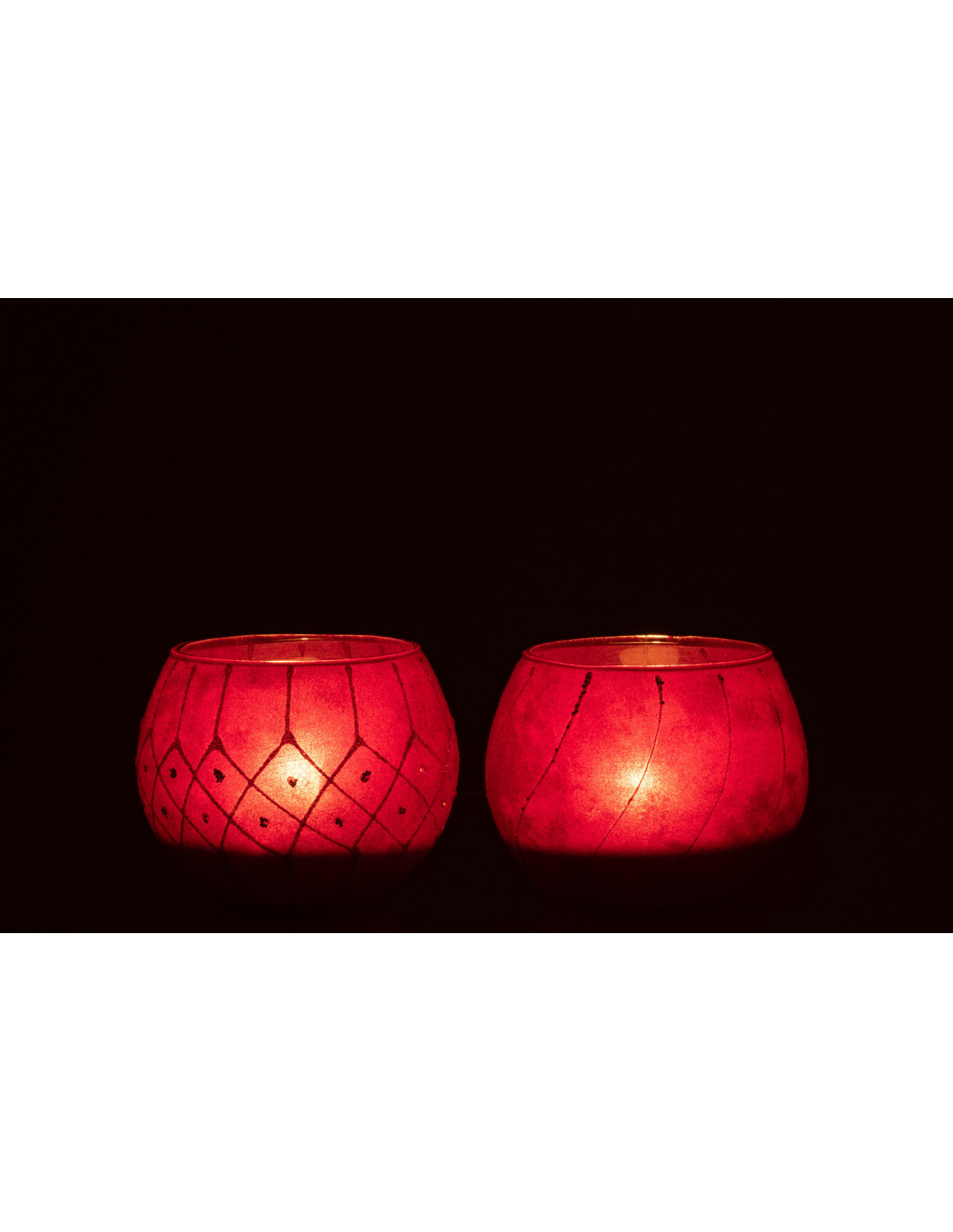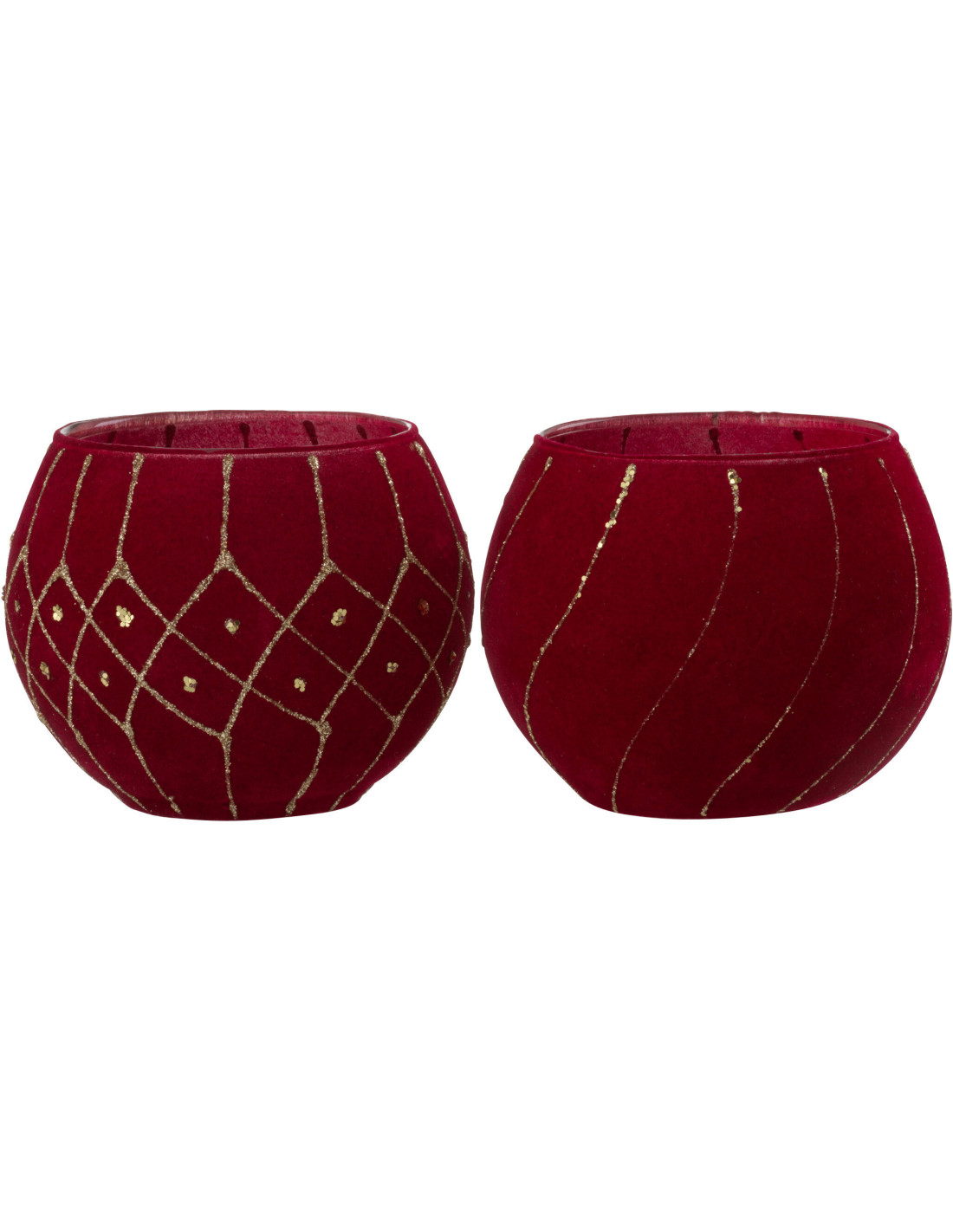 Photophore Rond Jasti Diamètre 10 cm en Verre Rouge Doré Effet velours (Lot de 2)