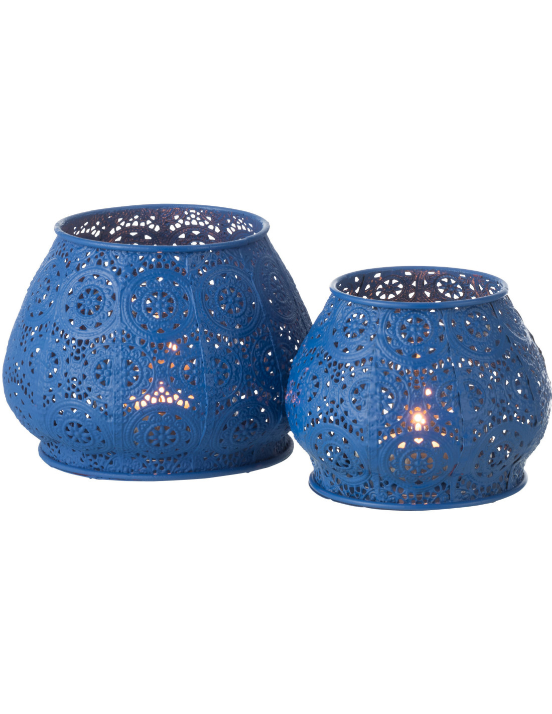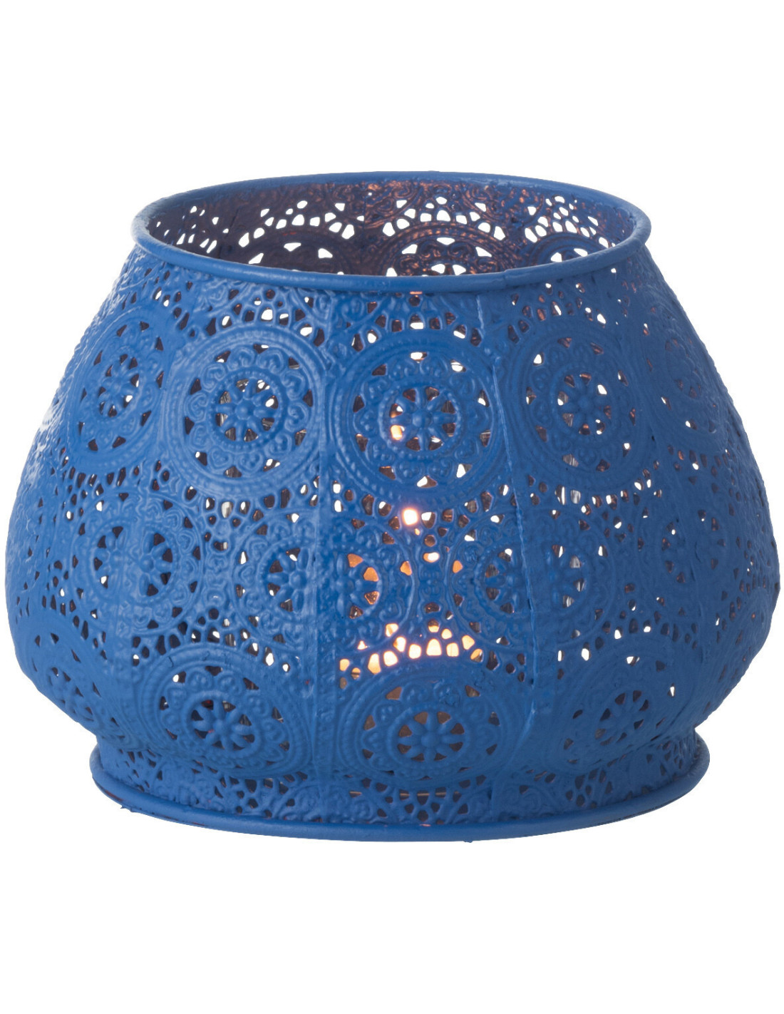 Photophore rond mexicain Diamètre 16 cm en Métal Bleu Verre Transparent Ajouré Lupita