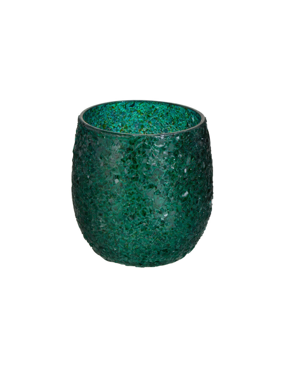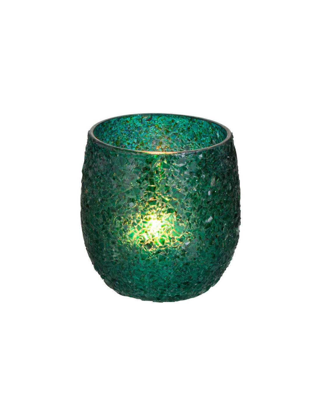 Photophore Rond Tom Diamètre 9 cm en Verre Vert Effet paillettes
