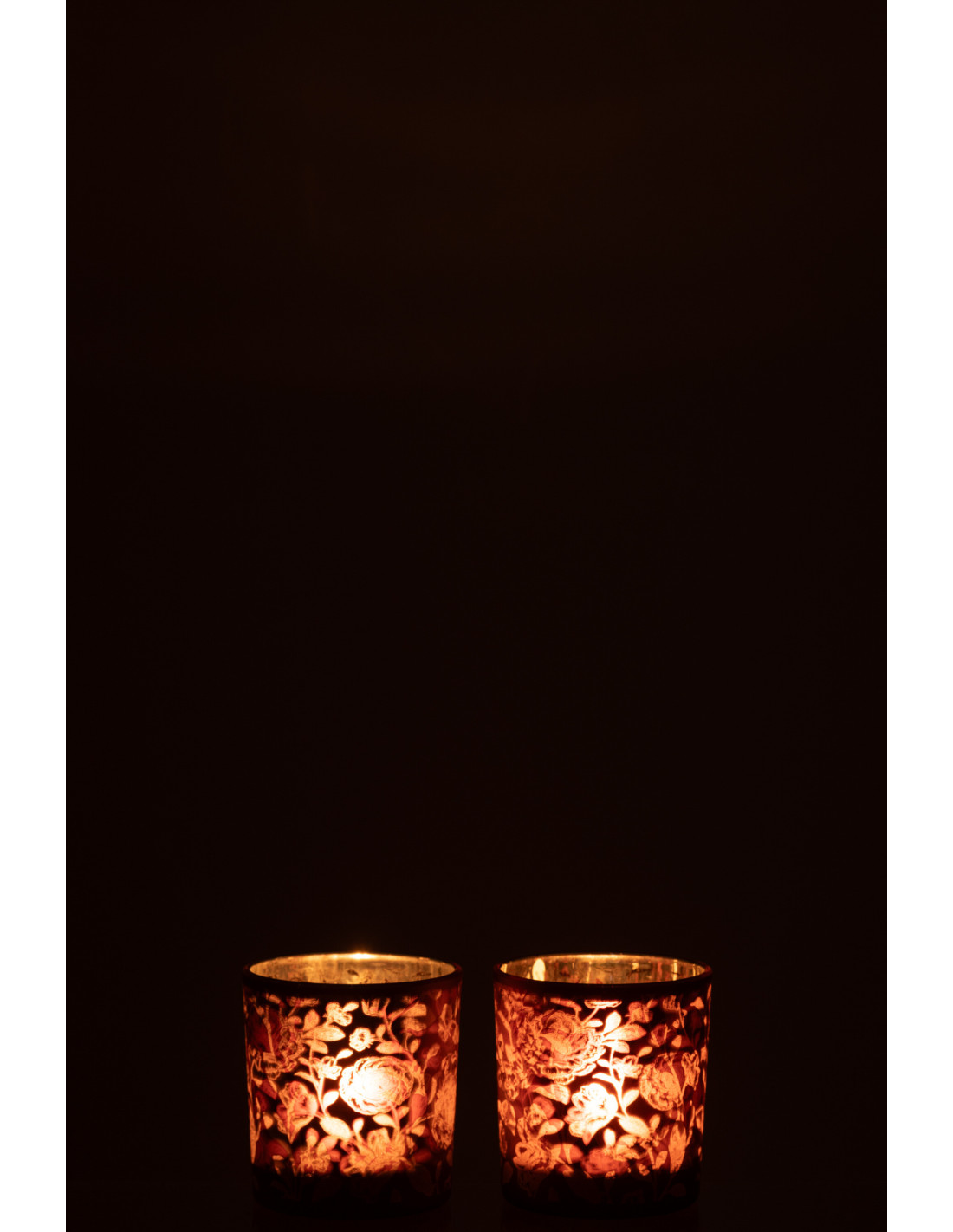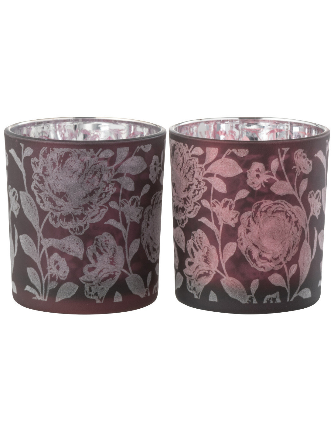 Photophore Shabby chic Diamètre 7 cm en Verre Rouge bordeaux Argenté Motif fleurs Urionk (Lot de 2)