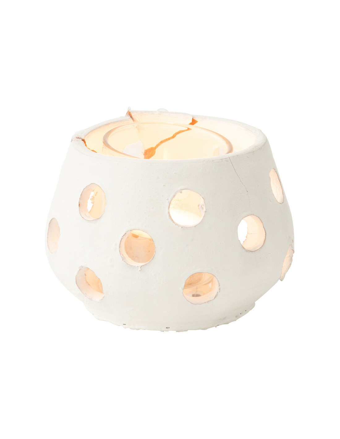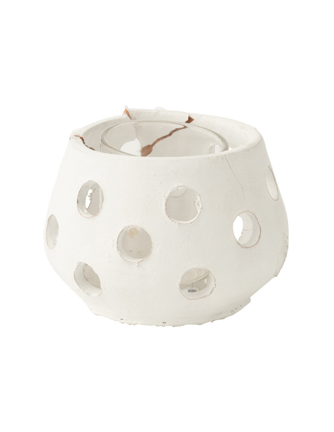 Photophore style bord de mer Boule 11 cm Argile Blanc Verre Transparent Ibiza