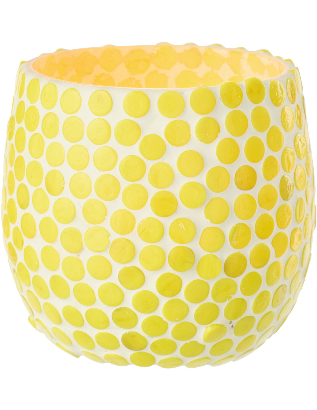 Photophore style méditerranéen D 9 cm Verre Jaune Blanc Mosaïque Tessella