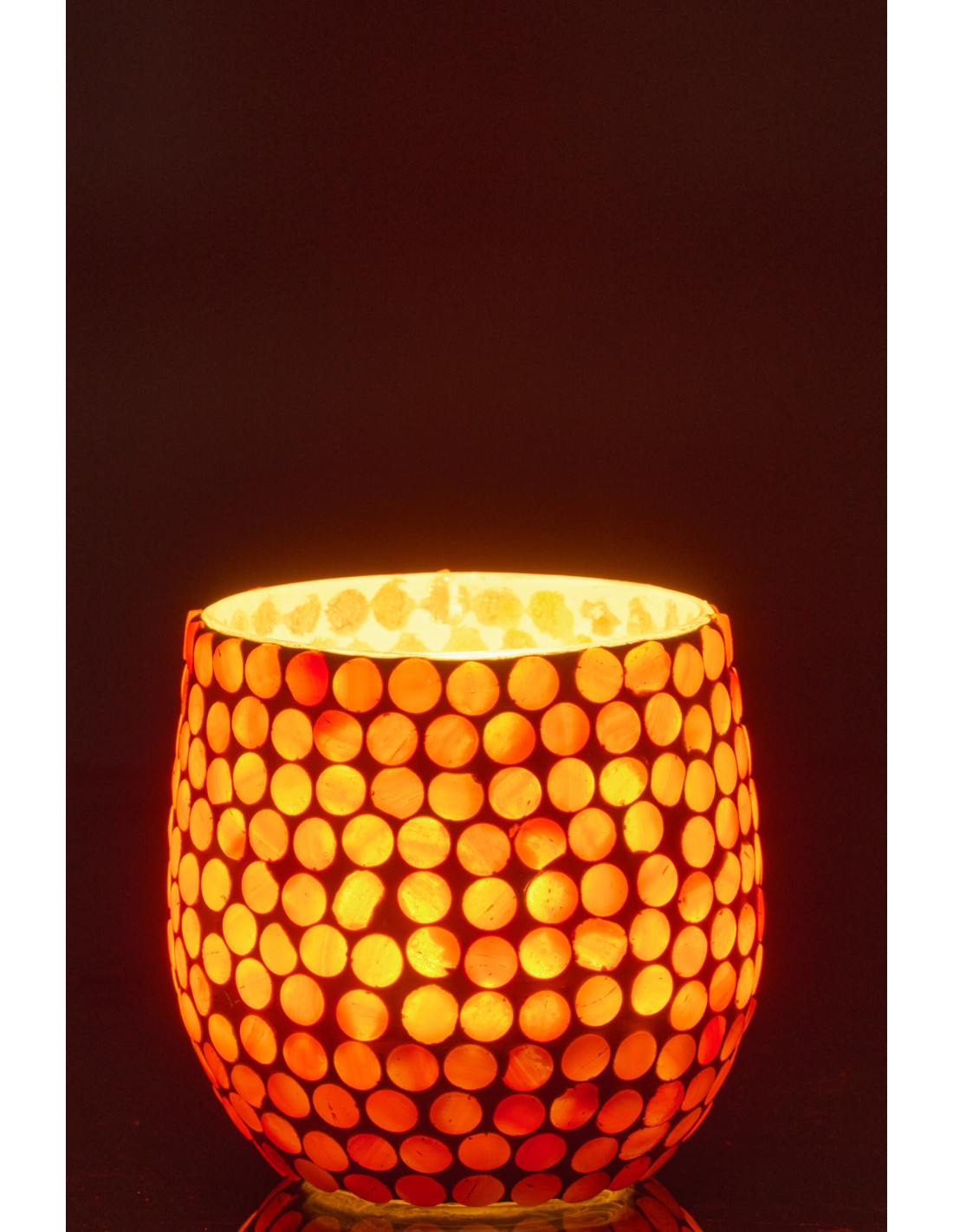 Photophore style méditerranéen D 9 cm Verre Orange Blanc Mosaïque Tessella