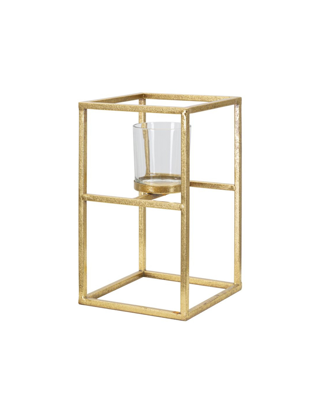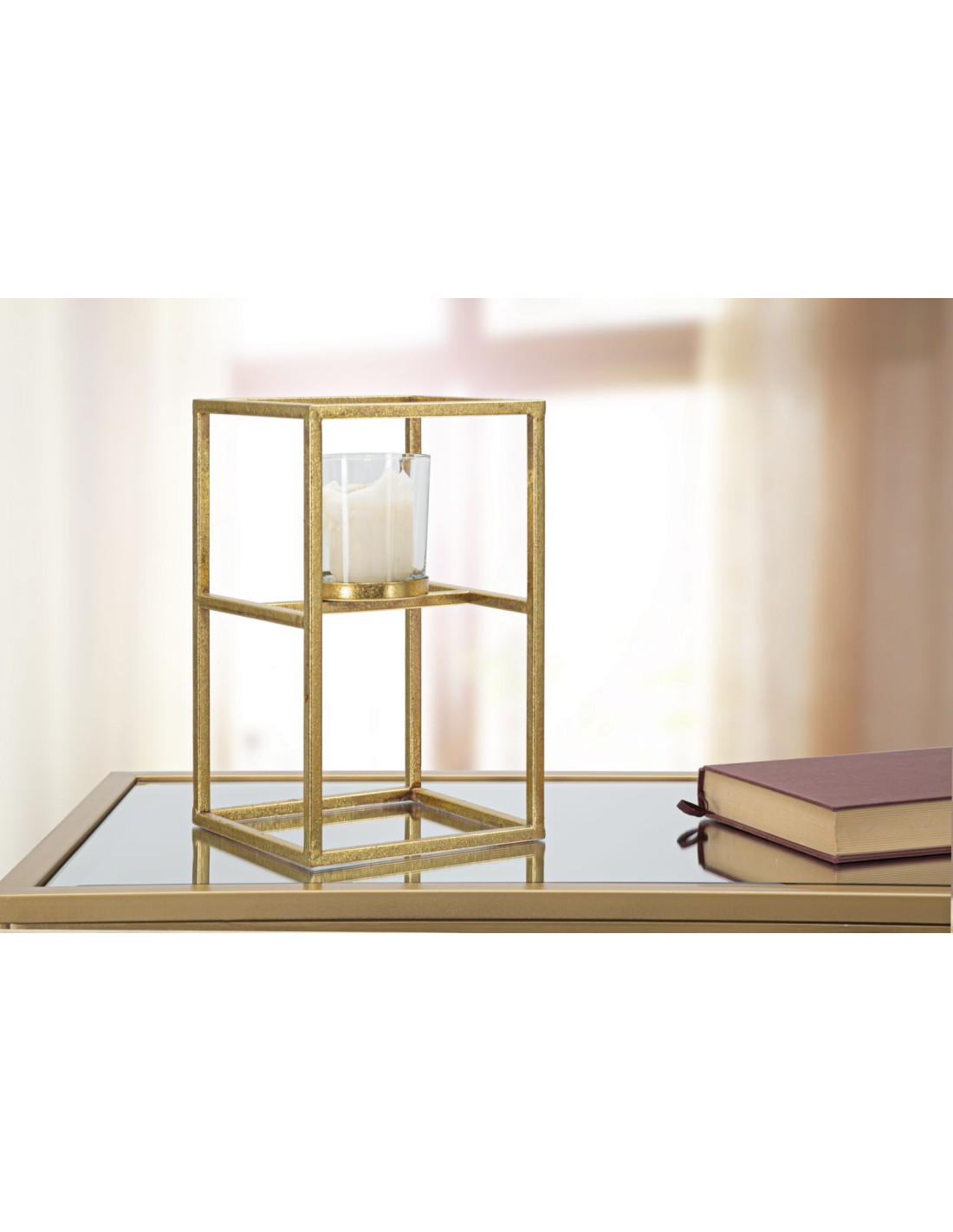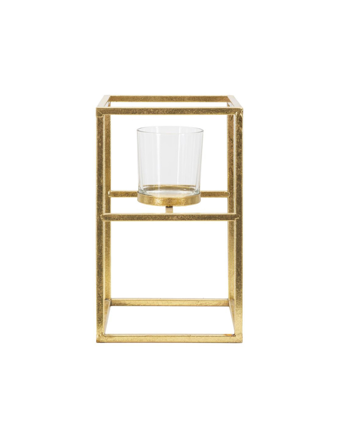 Photophore sur pied design Hauteur 25 cm en Métal Doré Verre Transparent Tarin