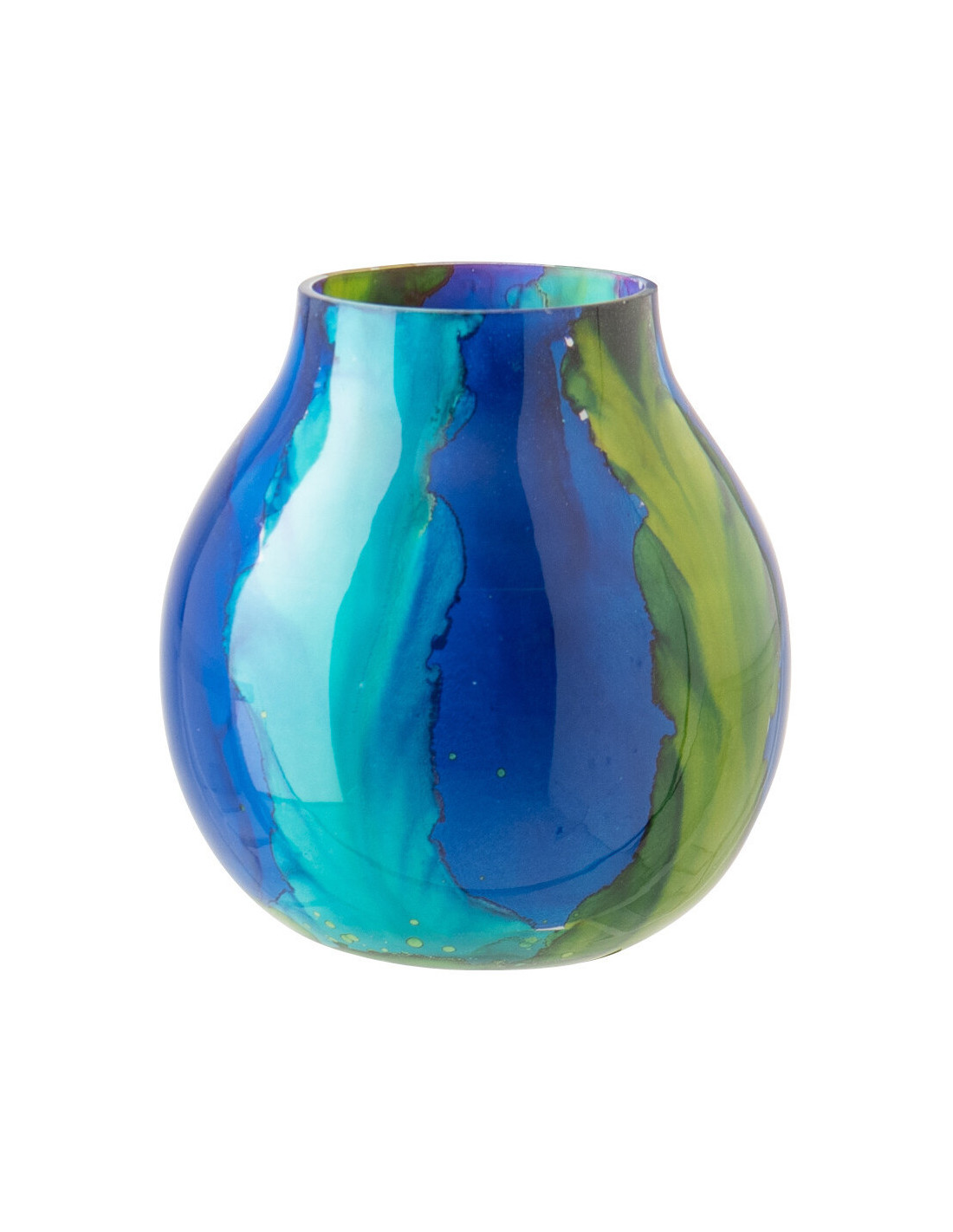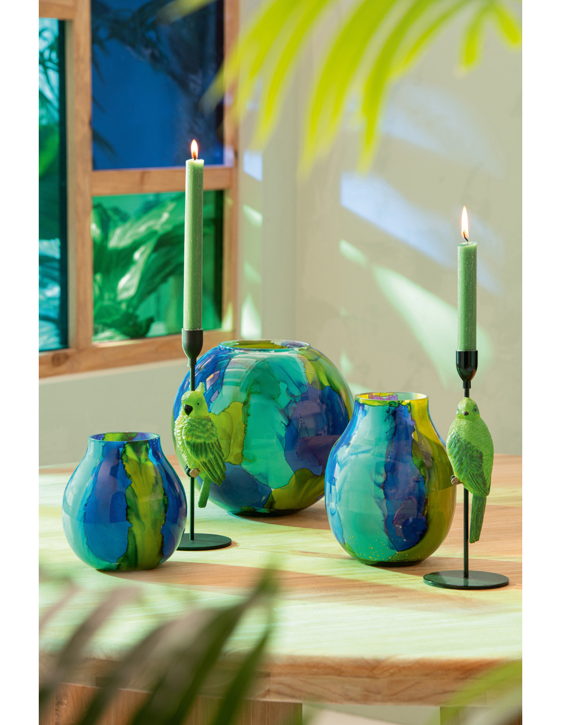 Photophore tropical chic Ovale D 14 cm Verre Bleu Vert Zéphara